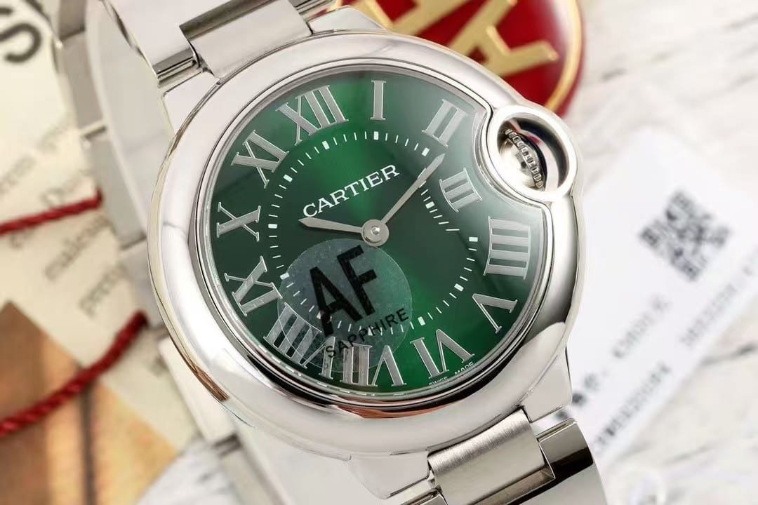 Still, the AF Factory CRW6920084 Green Dial Super Clone achieves over 97 % visual and functional accuracy versus the genuine Cartier Ballon Bleu — a masterpiece for collectors who value both beauty and precision.