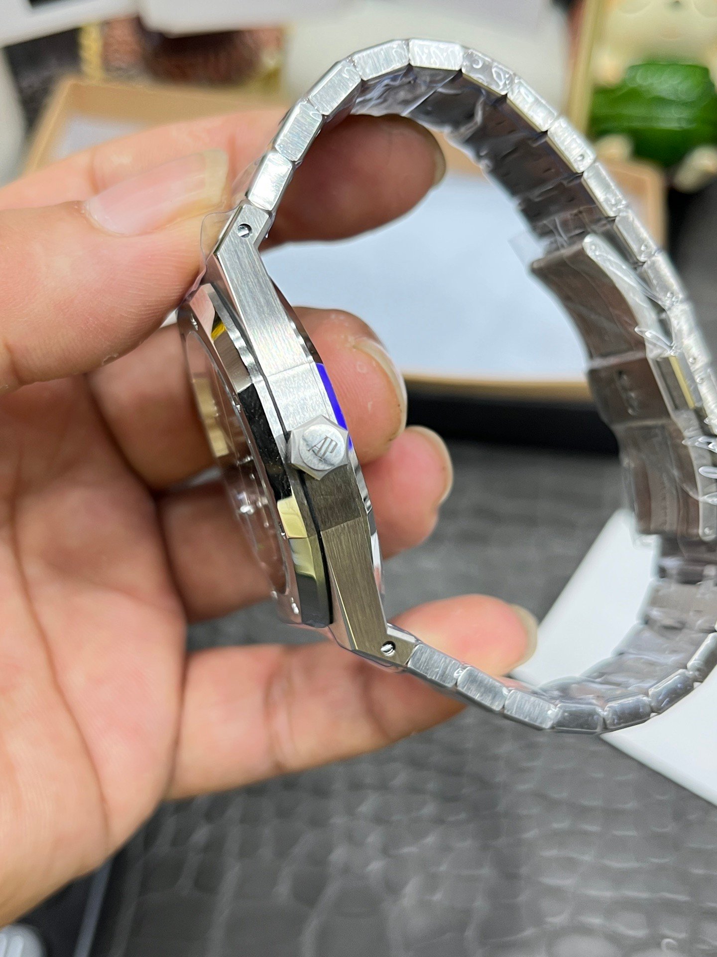 4. The active end links at the bracelet connection point are identical to those in authorized dealers. The dial of the APS version of the 15400 has been newly upgraded as follows: