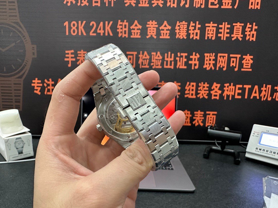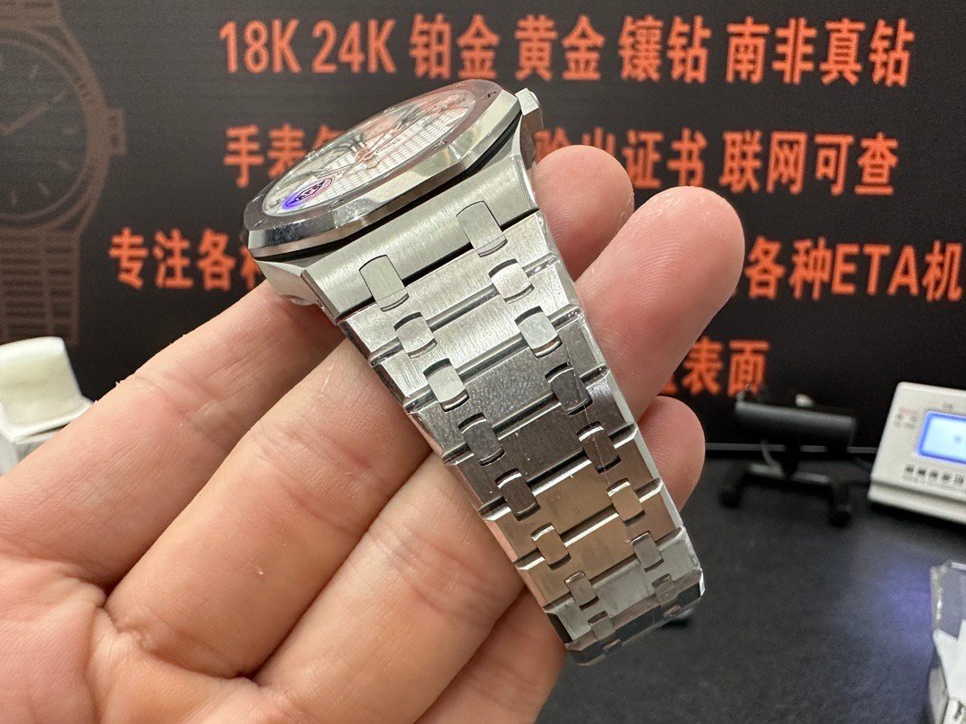 4. The active end links at the bracelet connection point are identical to those in authorized dealers. The dial of the APS version of the 15400 has been newly upgraded as follows: