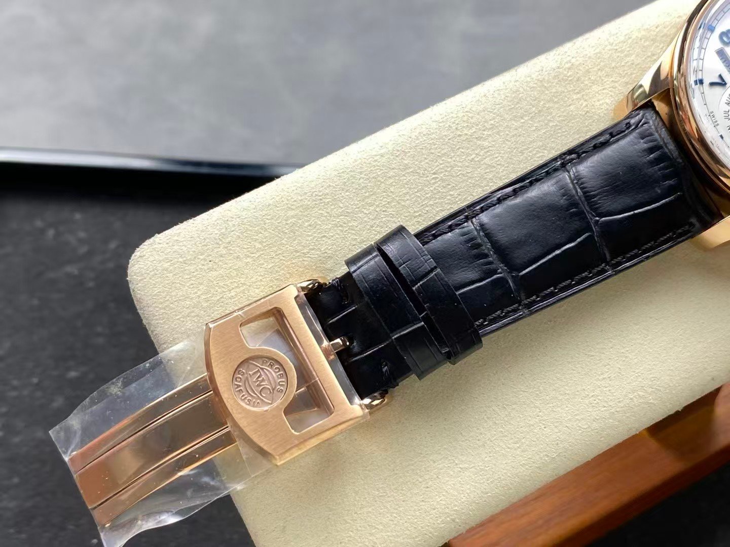 Clasp: Rose gold-tone deployant, IWC-style geometry