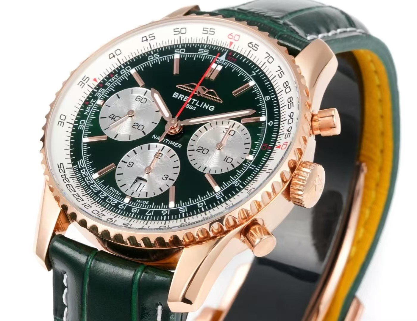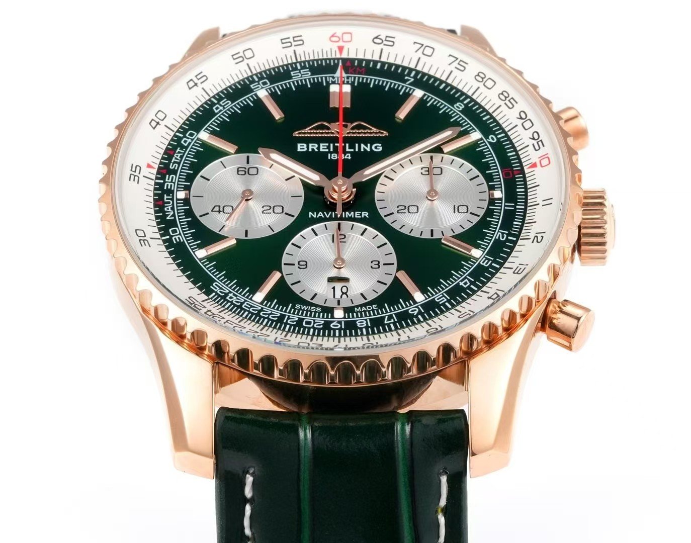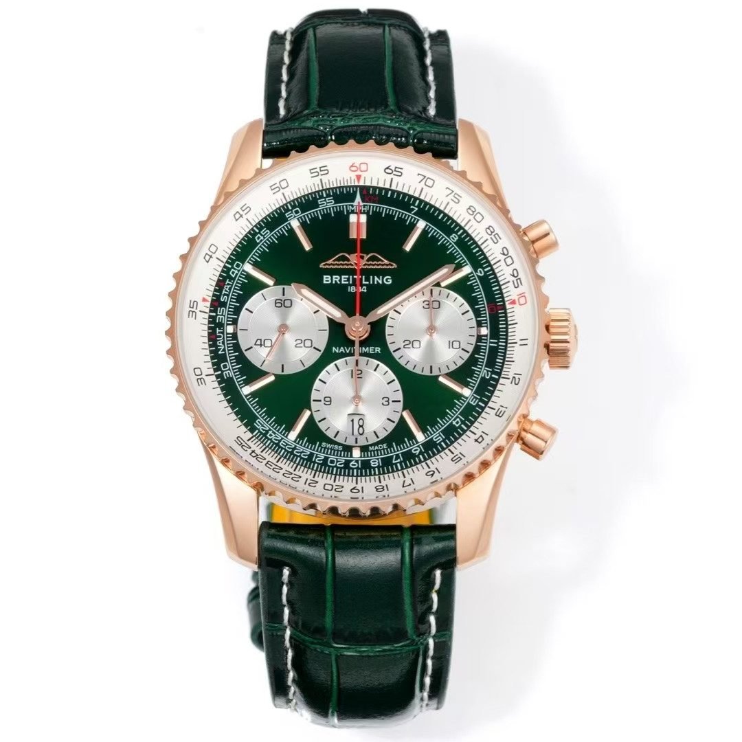 Breitling Navitimer Chronograph Super Clone – BLS Factory Rose Gold Case Green Dial Edition