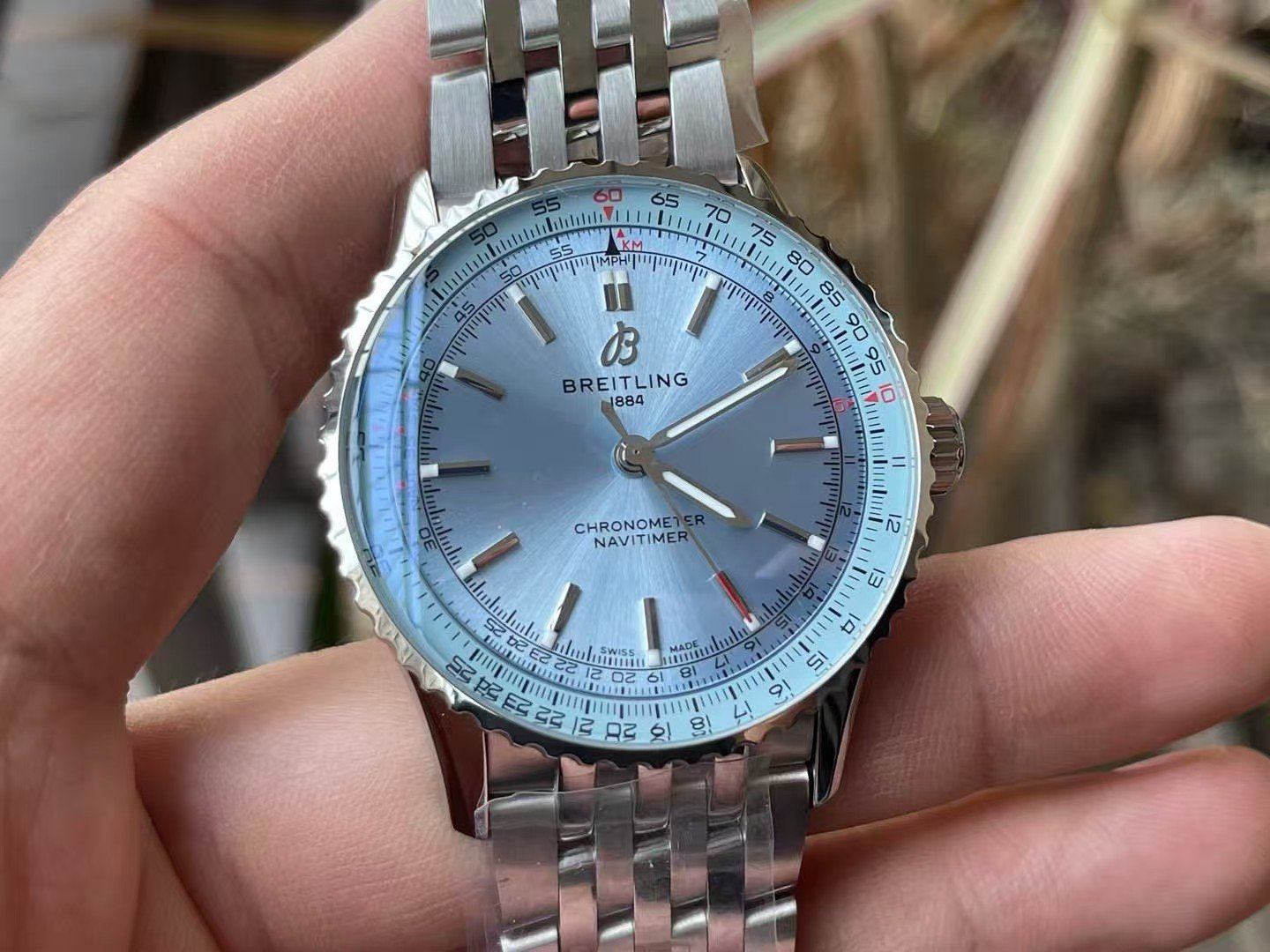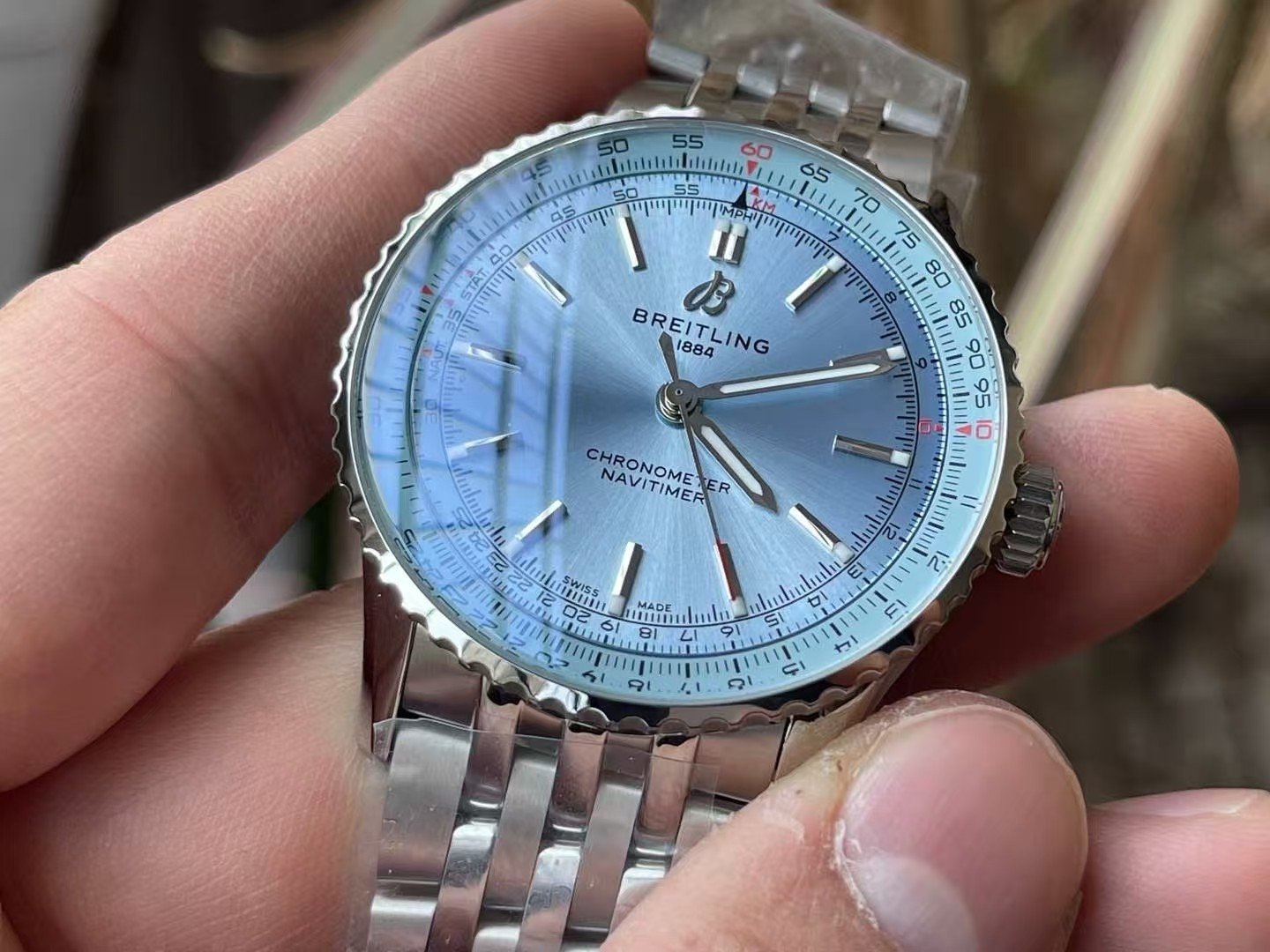 This version of the Navitimer belongs to a life that stays mostly in motion but rarely in a hurry. It fits into mornings that begin outdoors, bright light reflecting off windows, and long afternoons where time is checked between movements rather than between meetings. It suits a wearer who prefers clarity without sharpness. Someone who likes the feeling of light rather than the weight of authority. If your routine depends on emotional drama or visual dominance, this watch may feel emotionally cool. It doesn’t project urgency. It reflects light and keeps going.