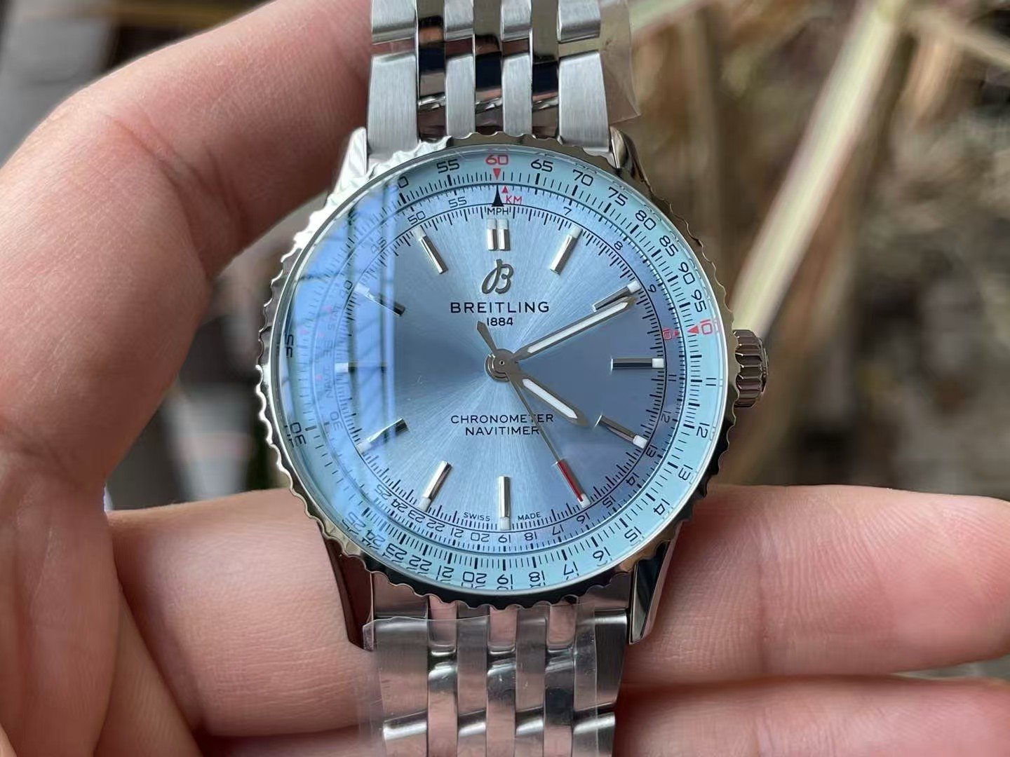 Breitling Navitimer Super Clone – BLS Factory Silver Case Ice Blue Dial on Steel Bracelet