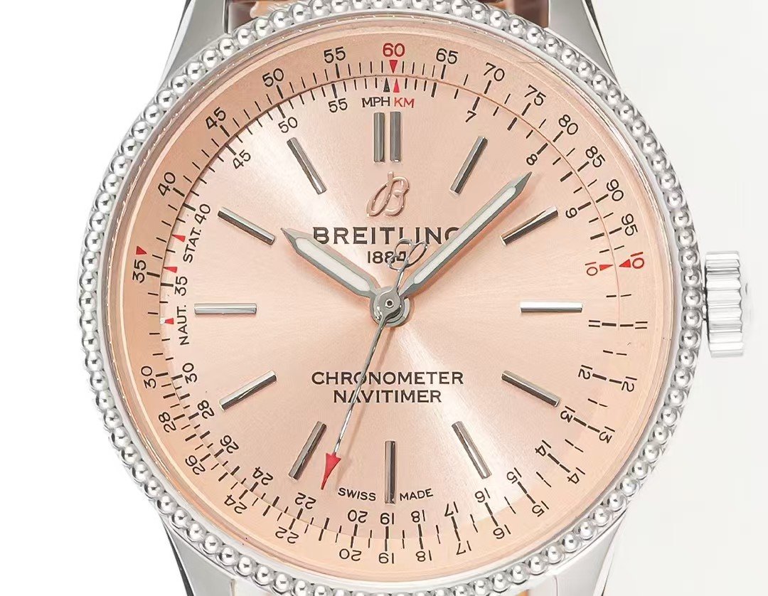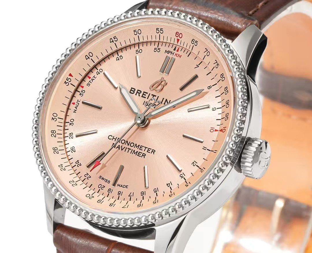Breitling Navitimer Super Clone by BLS Factory — Silver Case, Soft Rose Dial, Brown Leather in Daily Light
