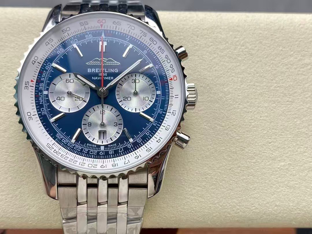 Breitling Navitimer Super Clone by BLS Factory — Steel Case, Blue Dial, On the Wrist in Motion