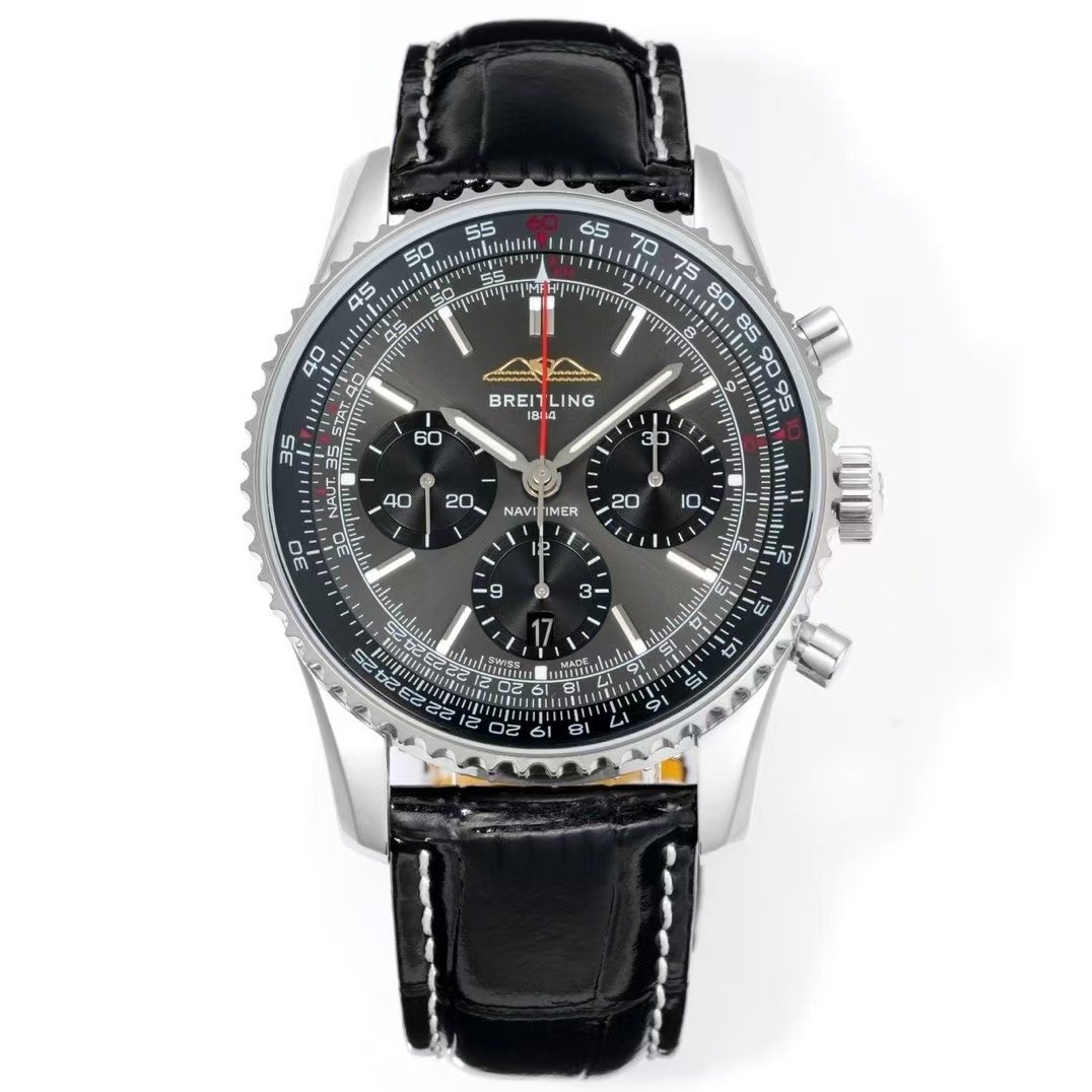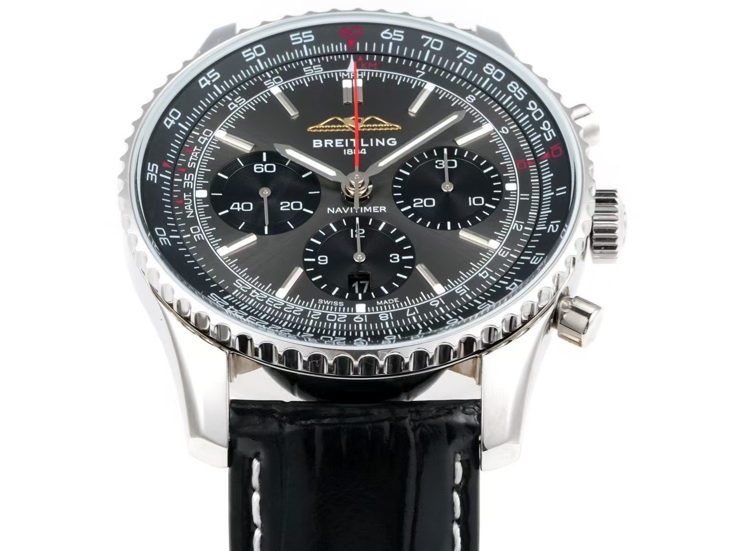 Breitling Navitimer Super Clone by BLS Factory — Steel Case, Dark Dial, Black Leather Strap