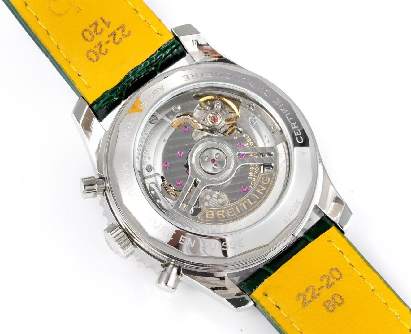 What it mirrors is the working Navitimer, not the boutique Navitimer. What it does not try to hide is that this is a Guangzhou-built super clone structure designed for repetition and tolerance rather than instant visual shock.