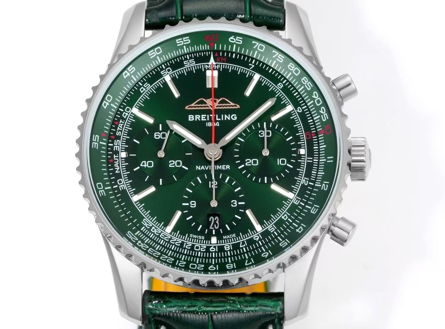 Breitling Navitimer Super Clone — Steel Case, Green Dial, Green Leather Strap (Chronograph Edition)