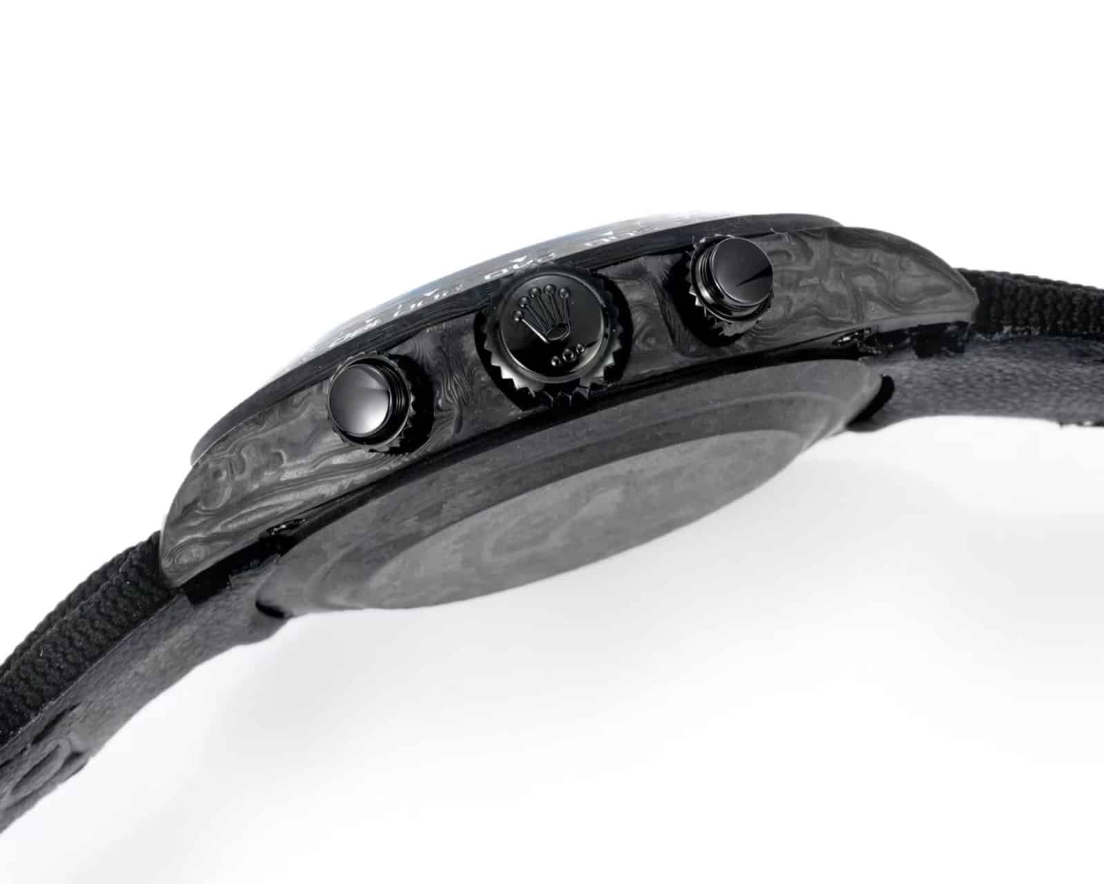 The chronograph pushers and crown set smoothly, with the familiar Oyster-style thread engagement, but the carbon case softens the wrist weight, so the watch disappears when you move. This is the detail that most owners end up appreciating long-term: you don’t need to think about wearing it. It simply stays with you.
