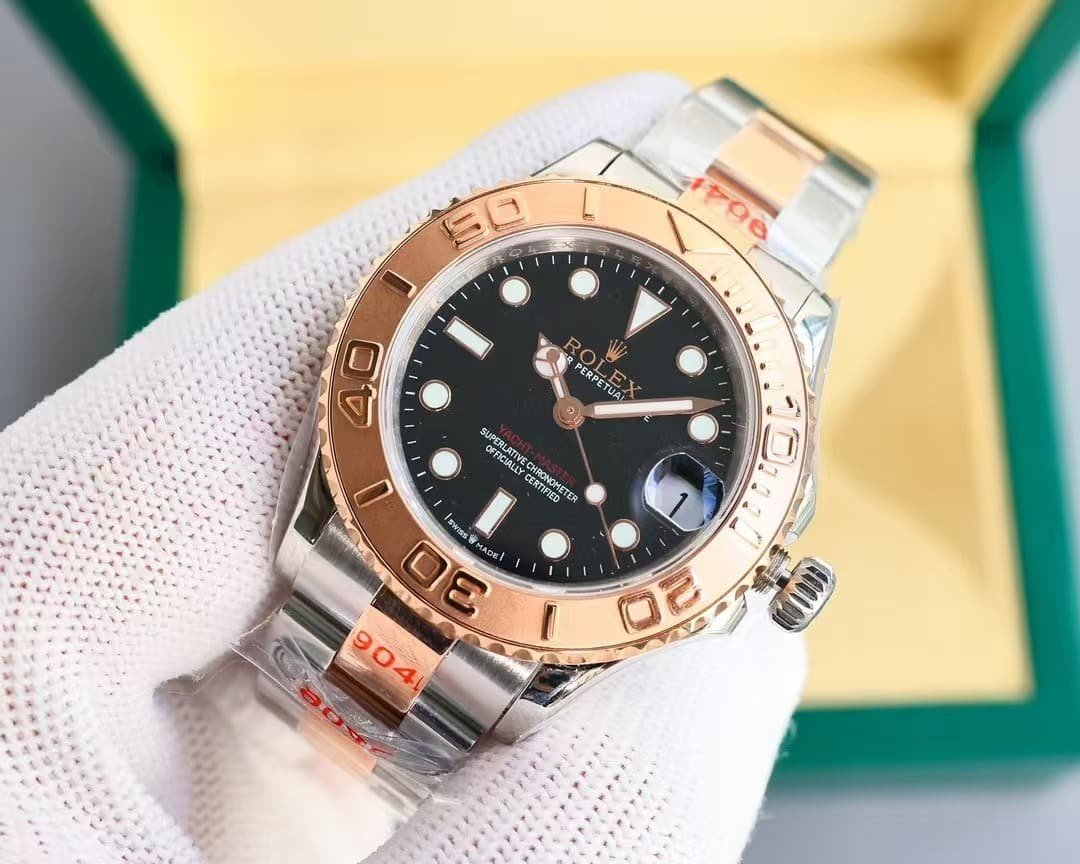 The Clean Factory Rolex Yacht-Master 40 Rolesor (Ref. 126621) is a stunning combination of sport and luxury. This two-tone model, featuring Everose gold and 904L stainless steel, replicates the genuine Rolex with near-perfect accuracy. From the rich chocolate brown dial to the polished Everose bezel, every element captures the balance between elegance and performance.