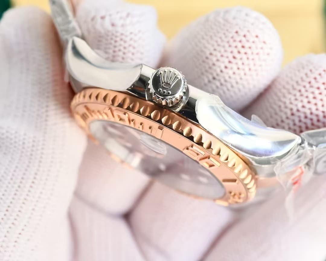 Clean Factory precisely reproduces the Everose Rolesor structure, combining mirror-polished 904L steel with warm rose-gold plating that’s virtually indistinguishable from Rolex’s proprietary 18 K Everose alloy. The chocolate dial features a radiant sunburst effect, changing tones under different lighting angles — a hallmark of genuine Rolex craftsmanship. Hour markers are filled with Swiss Super-Luminova, offering long-lasting glow and crisp edges.