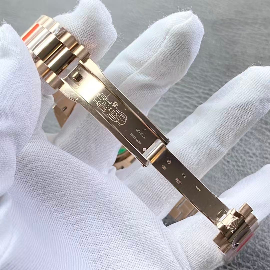 This configuration resembles the Day-Date 40 ref. 228238, but with a dial that looks like polished black marble with gold veining. Instead of the usual lacquer or metallic sunburst finish, this design leans into a natural-stone aesthetic—dark, textured, and unpredictable. It feels less like jewelry and more like something geological, a dial carved from rock rather than printed in a factory.