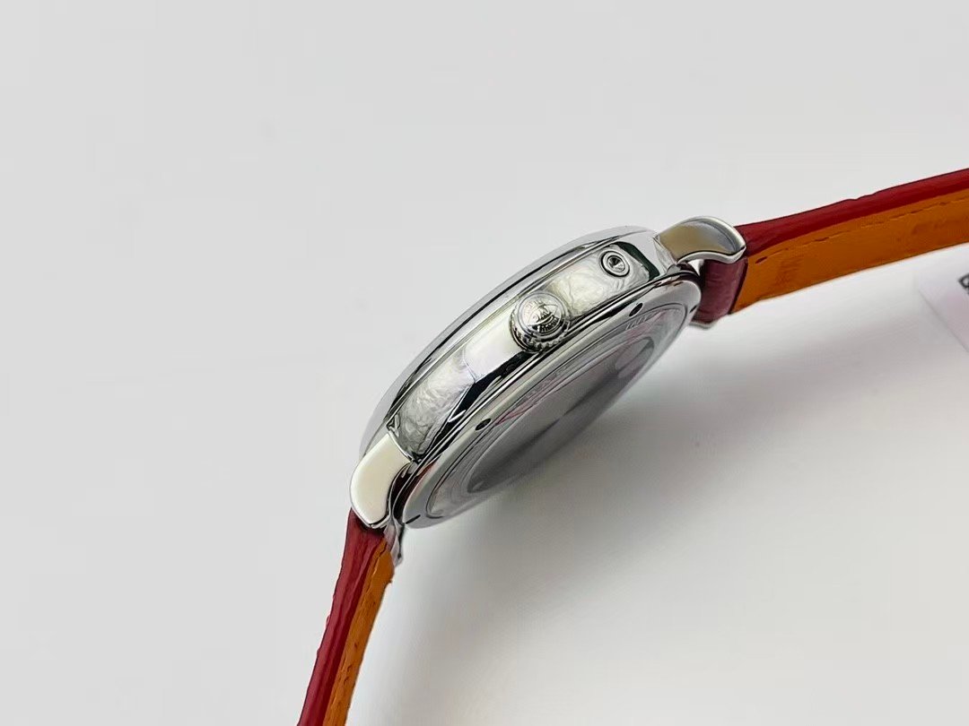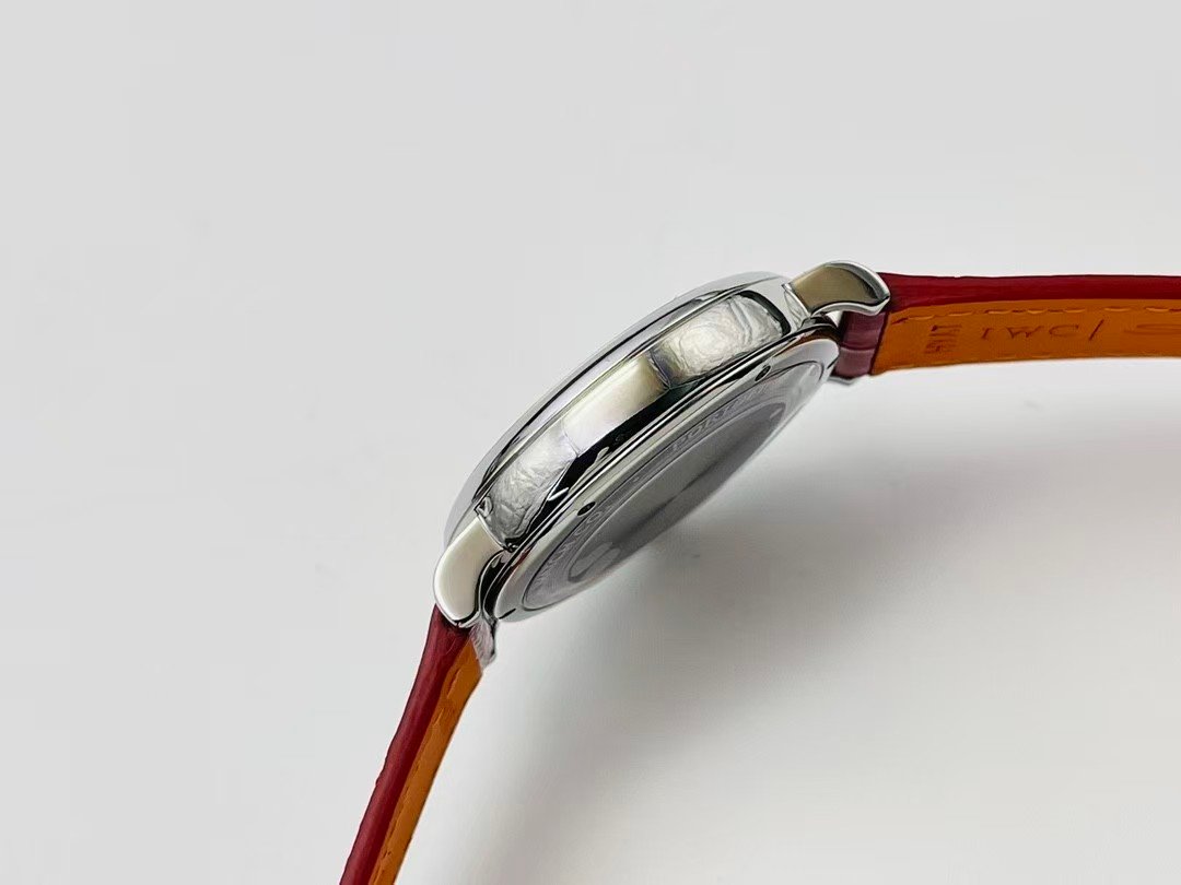 The polished stainless steel case is evenly finished with defined edges. Over-rounding is one of the most common failures in small dress-watch replicas, and GR avoids it here. Lug curvature is gentle and functional, allowing the strap to fall naturally without pulling the case upward.