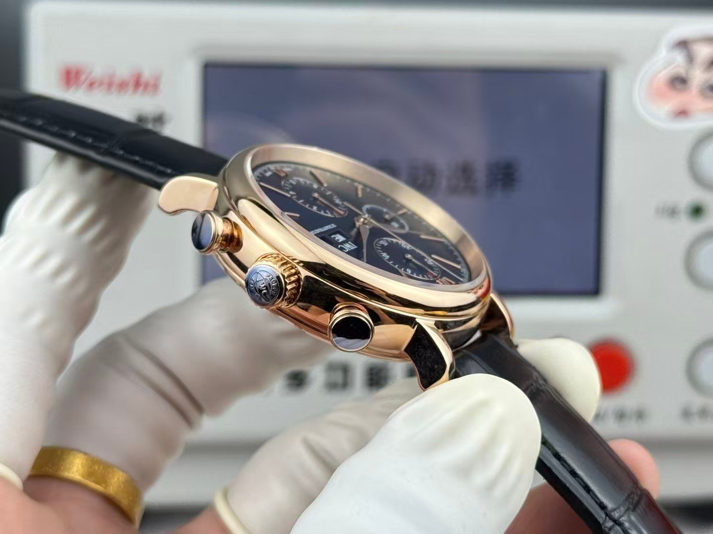 This model is clearly identifiable as the IWC Portofino Chronograph IW391036, often referred to among collectors as the Blue Dial Rose Gold Portofino Chrono. The combination of a deep blue dial, rose gold case, and restrained chronograph layout is one of the most demanding configurations to replicate cleanly, and GR Factory handles it with more discipline than most.