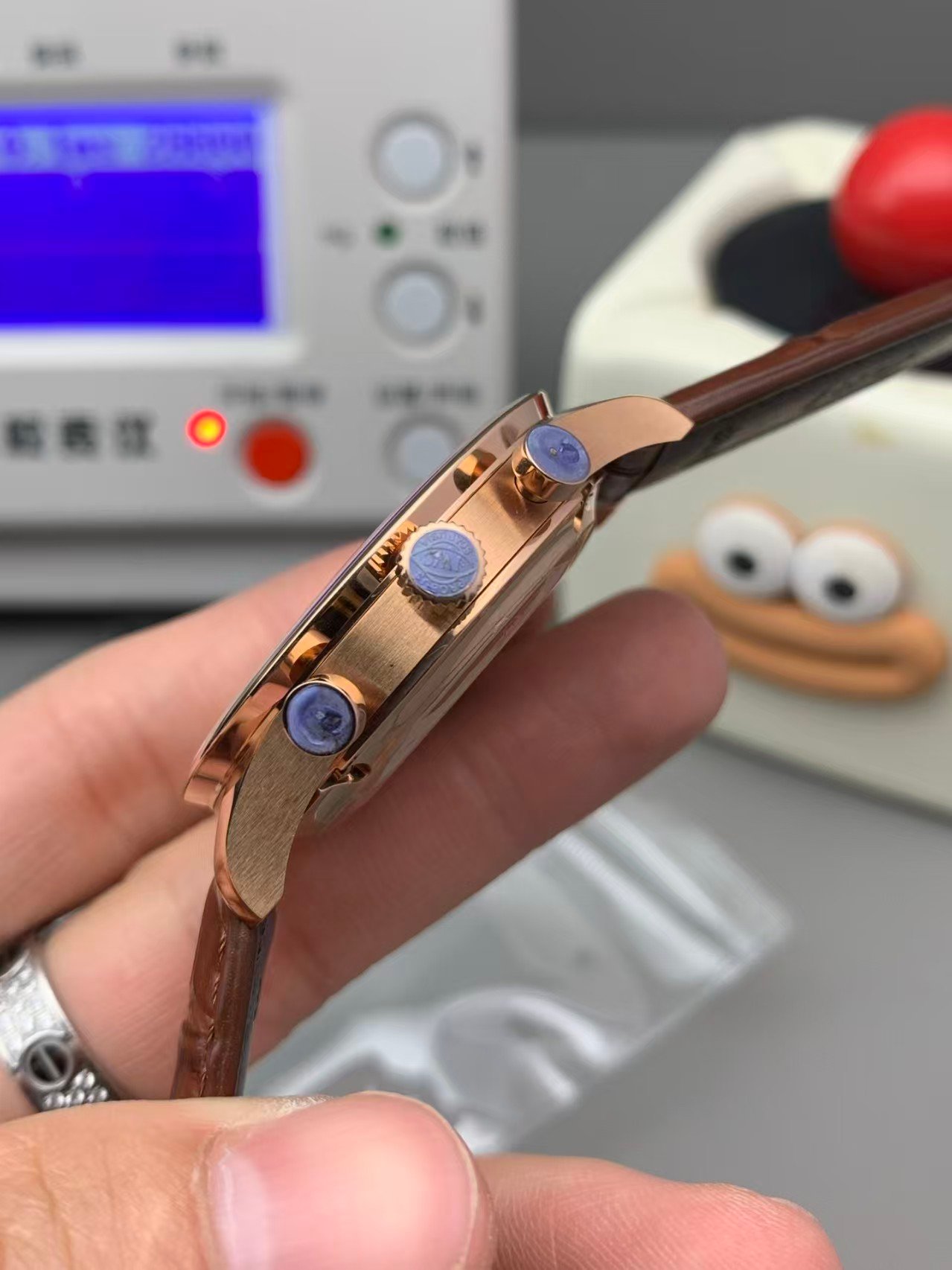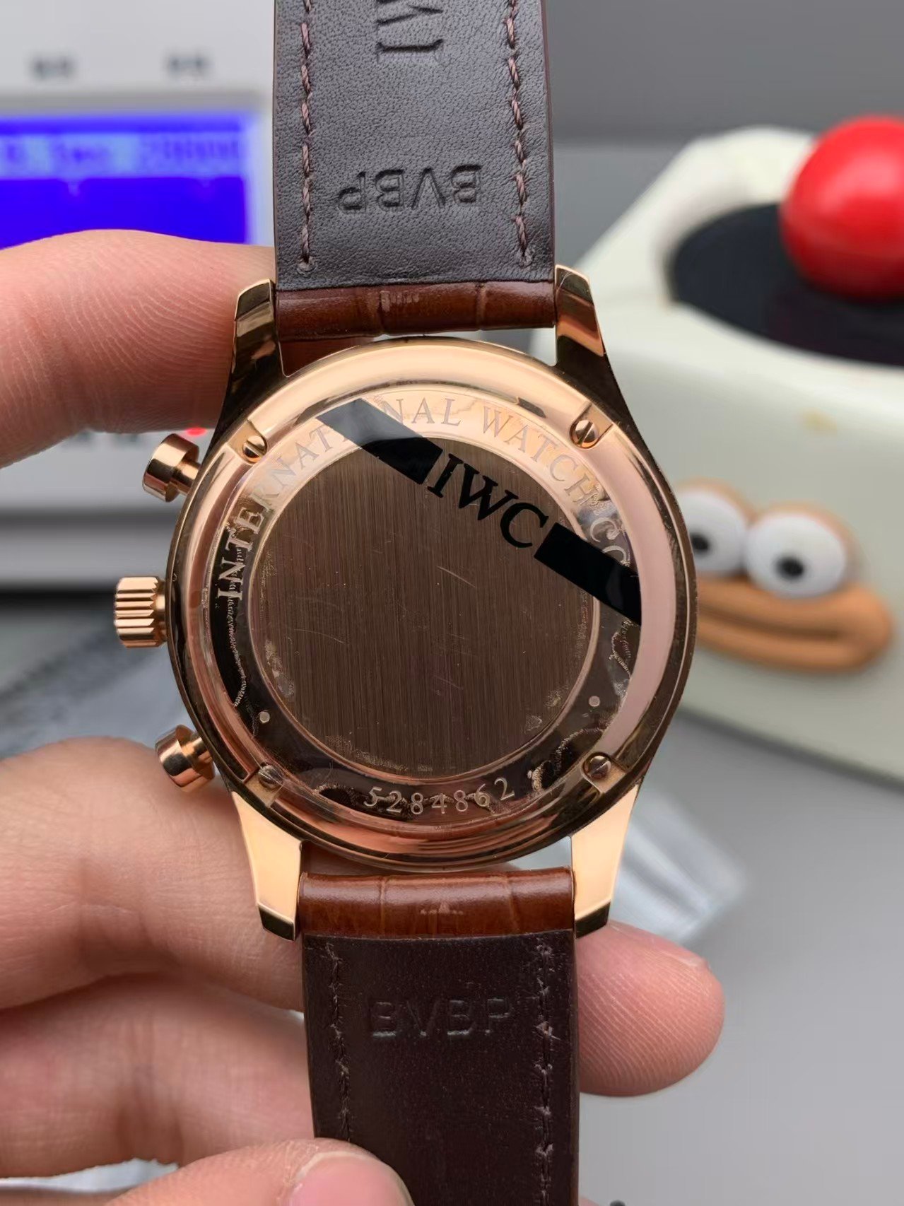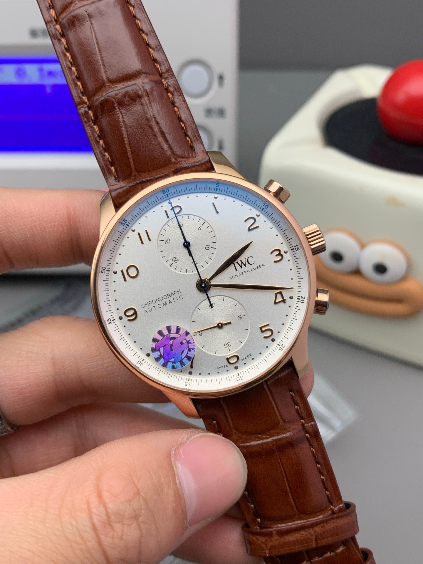 Anti-reflective coating is applied conservatively. Reflections remain present but softened, which matches how genuine IWC chronographs behave in offices and indoor lighting. This restraint pays dividends in long-term realism.