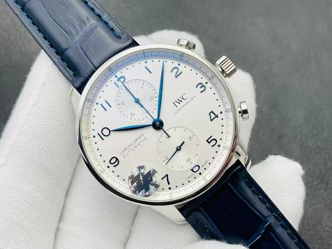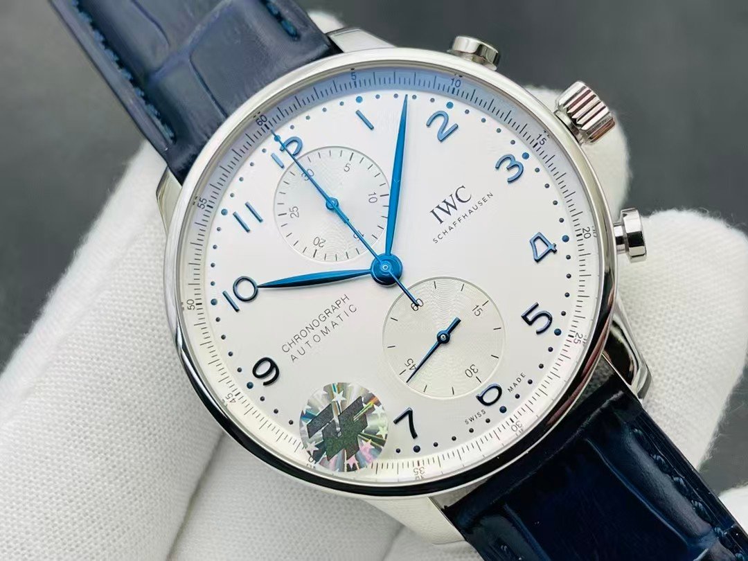 IWC Portugieser Chronograph IW371605 Super Clone — White Dial, Blue Hands, ZF Factory (150th Anniversary)