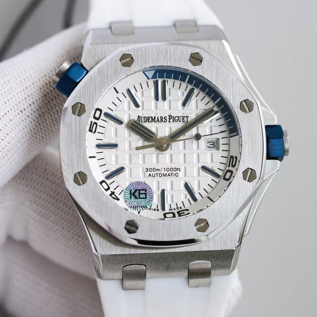 Among luxury divers, few designs are as iconic as the Audemars Piguet Royal Oak Offshore Diver. Its octagonal bezel, bold screws, and sculpted geometry make it unmistakable even from across the room. The KF Factory super clone version of the AP 15710ST White Dial represents one of the most faithful recreations available in China’s high-end replica market — both visually and mechanically.
