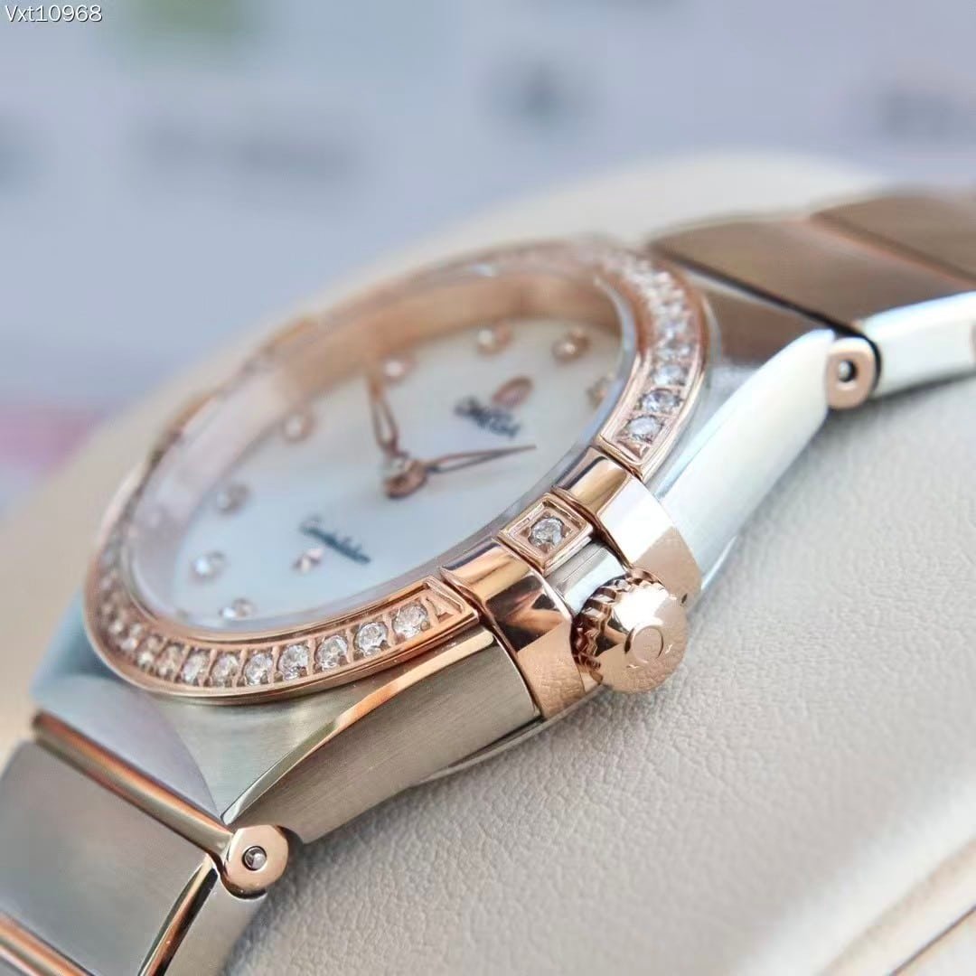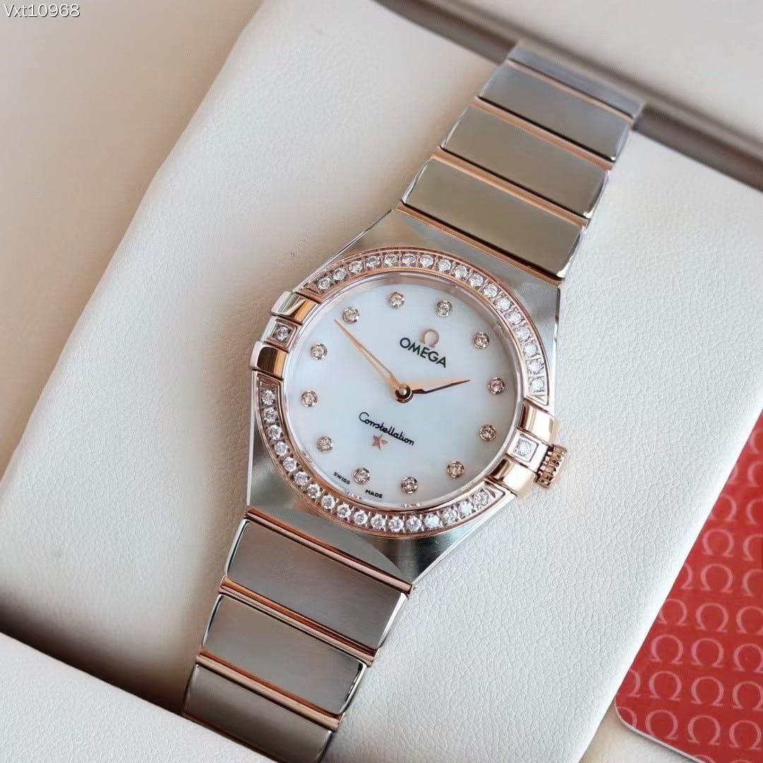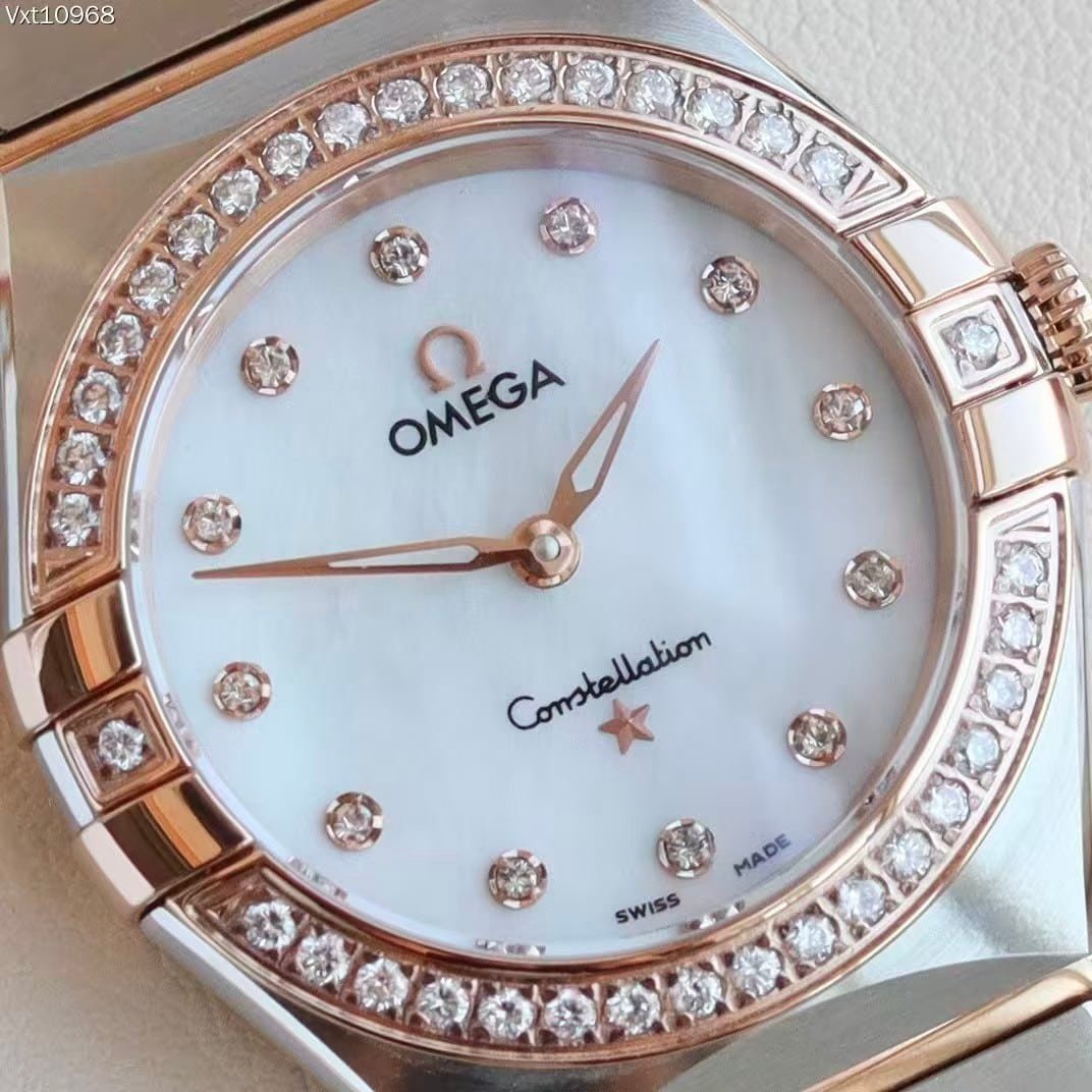 Omega Constellation 28mm White Mother-of-Pearl Dial – N1 Factory 1:1 Super Clone (Diamond Bezel & Index Edition)