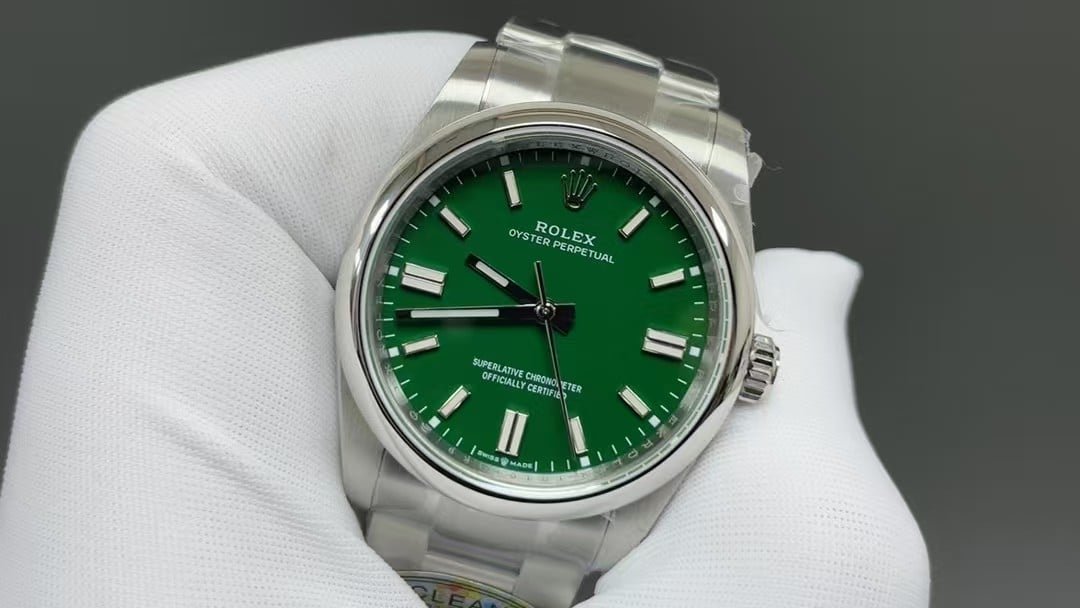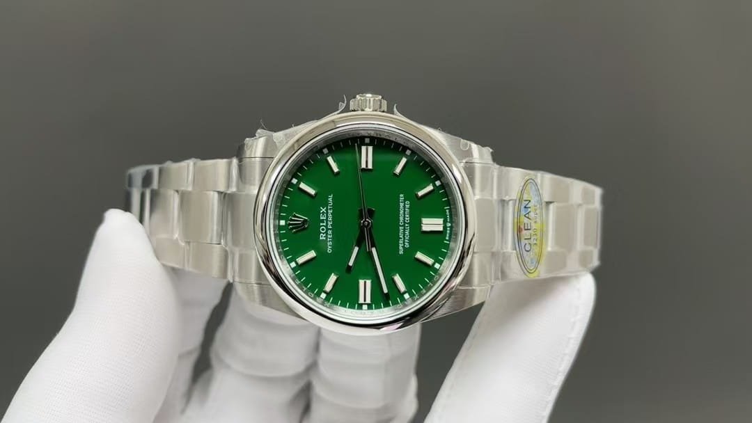 Among all modern Rolex clones, the Oyster Perpetual Green Dial 36mm (Ref. 126000) is considered one of the most faithfully replicated models in the market.