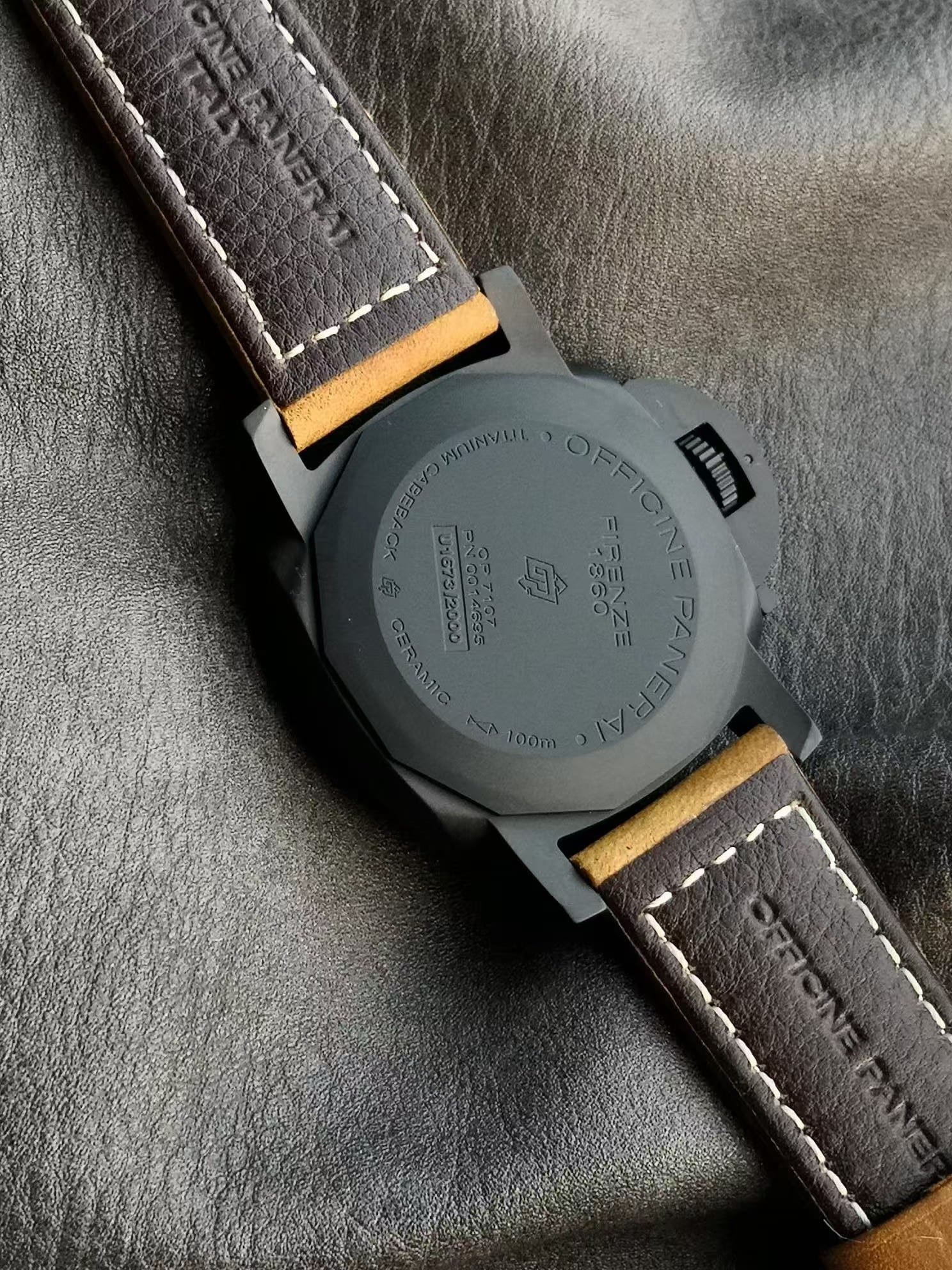 The matte ceramic finish gives the PAM00441 a stealthy, modern character that resists fingerprints and scratches.