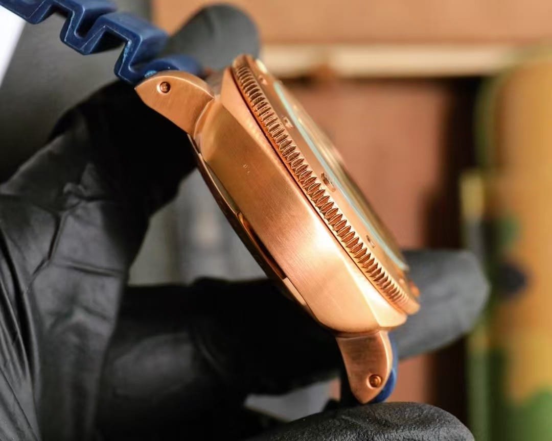 VS Factory’s 1:1 super clone version of the PAM00968 flawlessly captures the warm glow and texture of the genuine CuSn8 bronze alloy, achieving both aesthetic depth and authentic oxidation over time. With the precise VSF clone P.900 movement, this model delivers enduring reliability and a visually captivating design that matures uniquely for every collector.