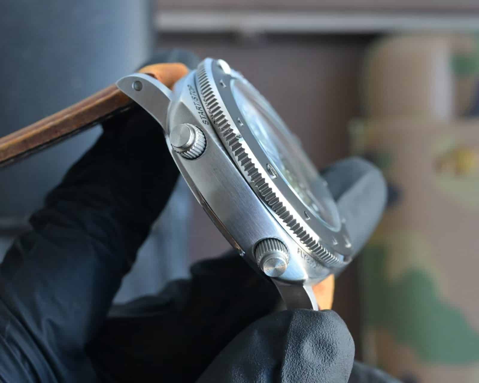 Fully functional flyback chronograph — identical reset feel as genuine.