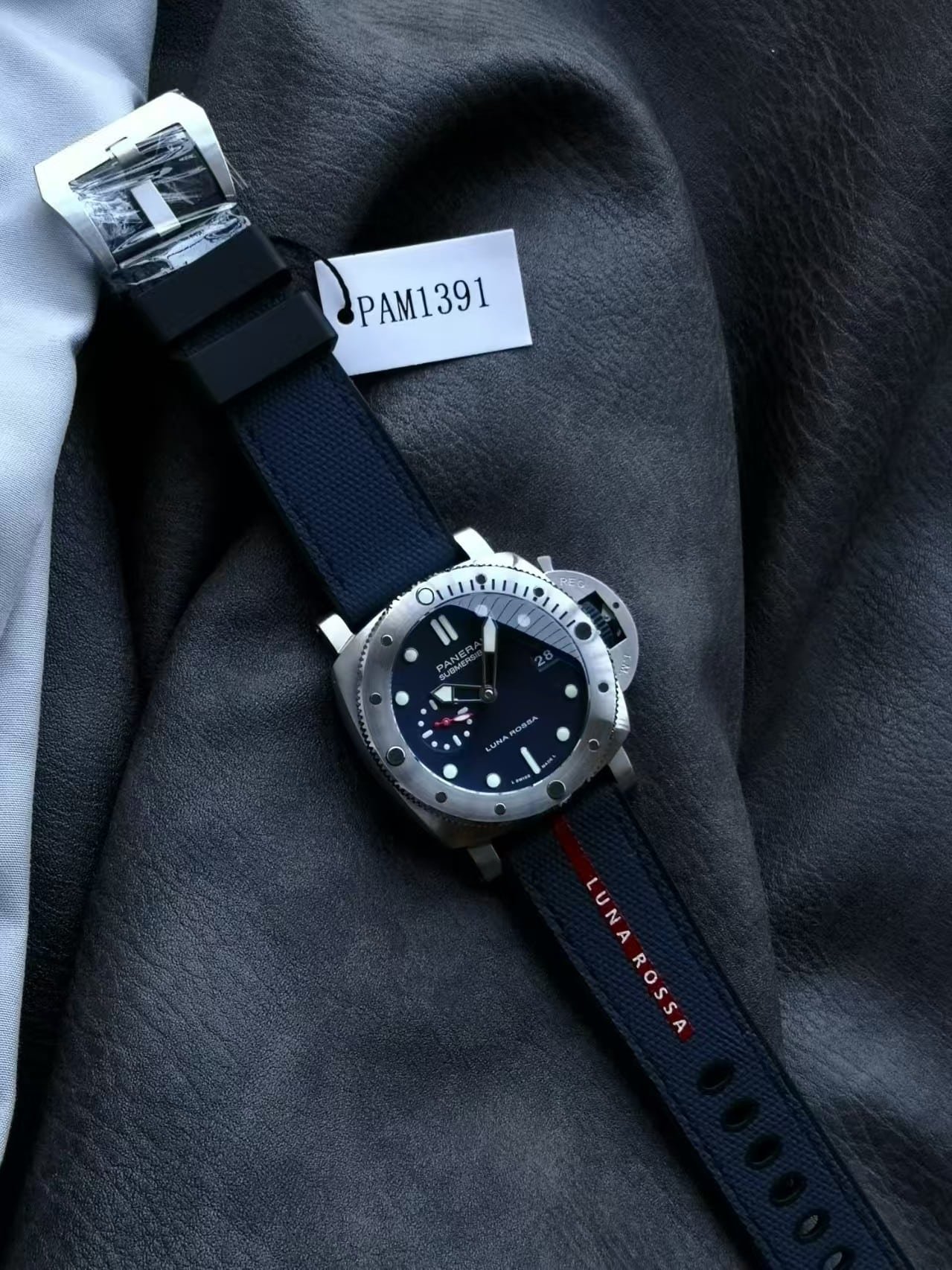 Authentic Luna Rossa sail-texture dial, perfectly replicated.