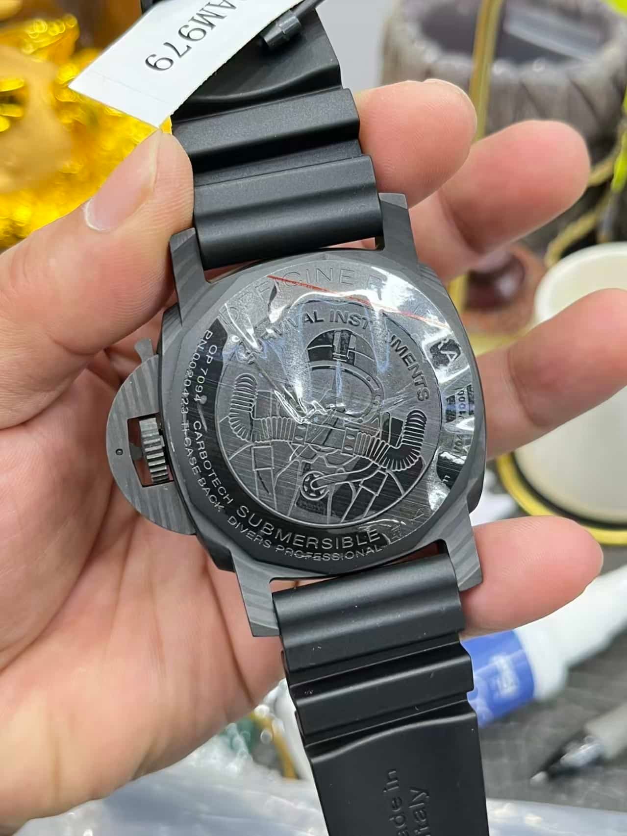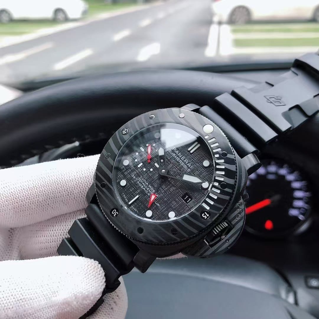 VS Factory’s 1:1 super clone version of the PAM00979 faithfully reproduces every visual and mechanical element of the genuine piece — from the layered carbon texture to the precise P.9010 clone movement — delivering the full experience of Panerai’s military-grade diver.