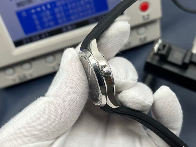 The 3K Factory achieves near-perfect gem alignment and bezel curvature identical to the genuine Patek Philippe, with seamless diamond spacing. Each stone is hand-set under microscope inspection to replicate the authentic sparkle of natural diamonds — creating a soft, elegant shimmer rather than a flashy glare.