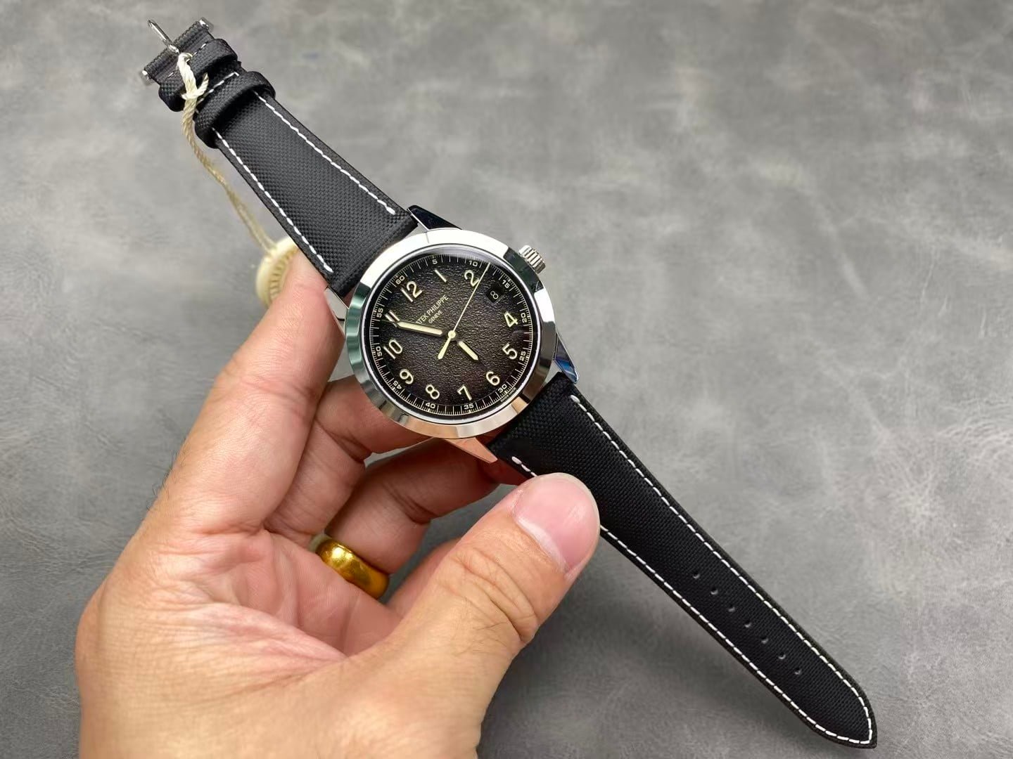 This Patek Philippe Calatrava Pilot 3K super clone features the signature black-grained dial with golden Arabic numerals, polished steel case, and screw-down crown. Underneath, a precisely cloned 324 SC automatic movement beats with silent confidence, ensuring accuracy within ±5 seconds per day — rivaling many Swiss chronometers.
