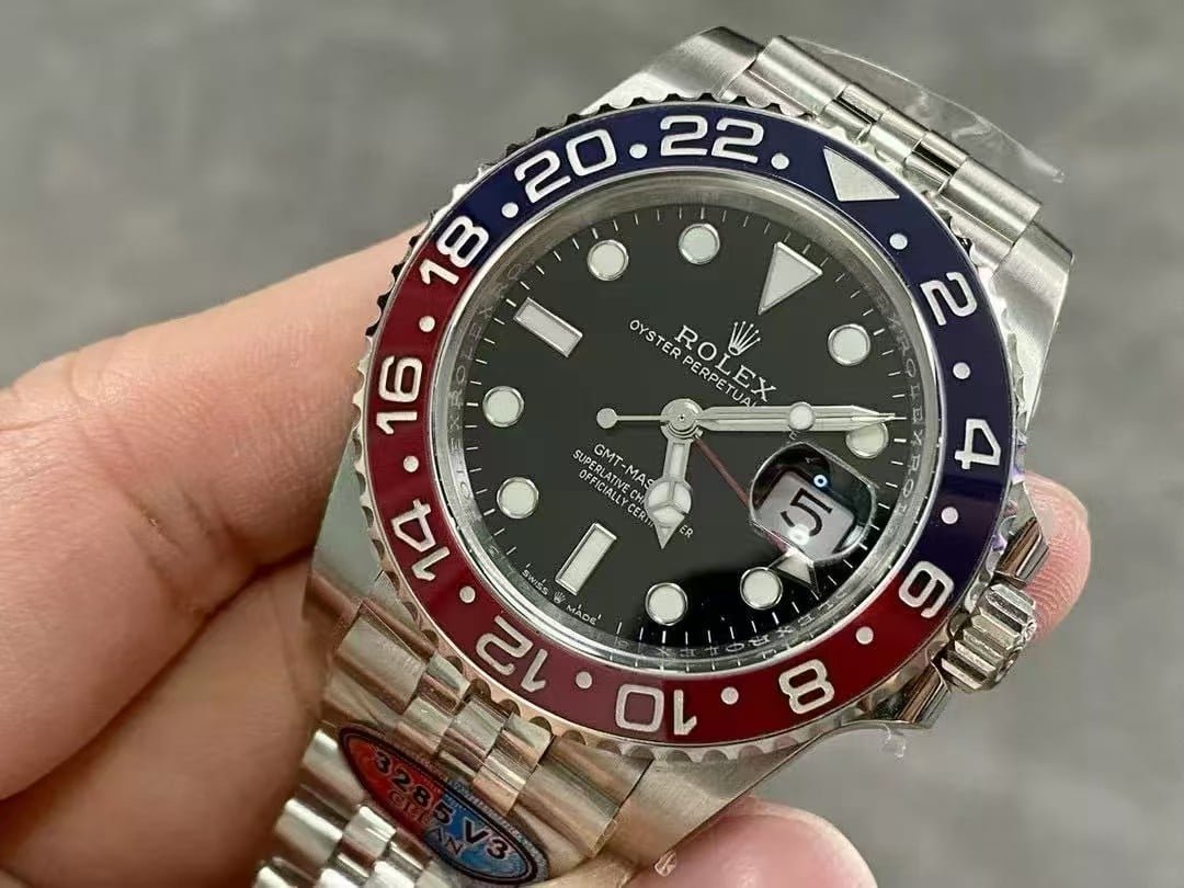 Among all Clean Factory GMTs, the V3 Pepsi feels the most “authentic.” The red and blue tones catch light beautifully — vivid but not flashy. The Jubilee bracelet gives the watch a refined, classic vibe, while the weight feels premium and balanced. The GMT hand clicks precisely into each time zone, and the winding action is smooth with no mechanical drag. It’s the kind of watch that easily passes for genuine even in close inspection.