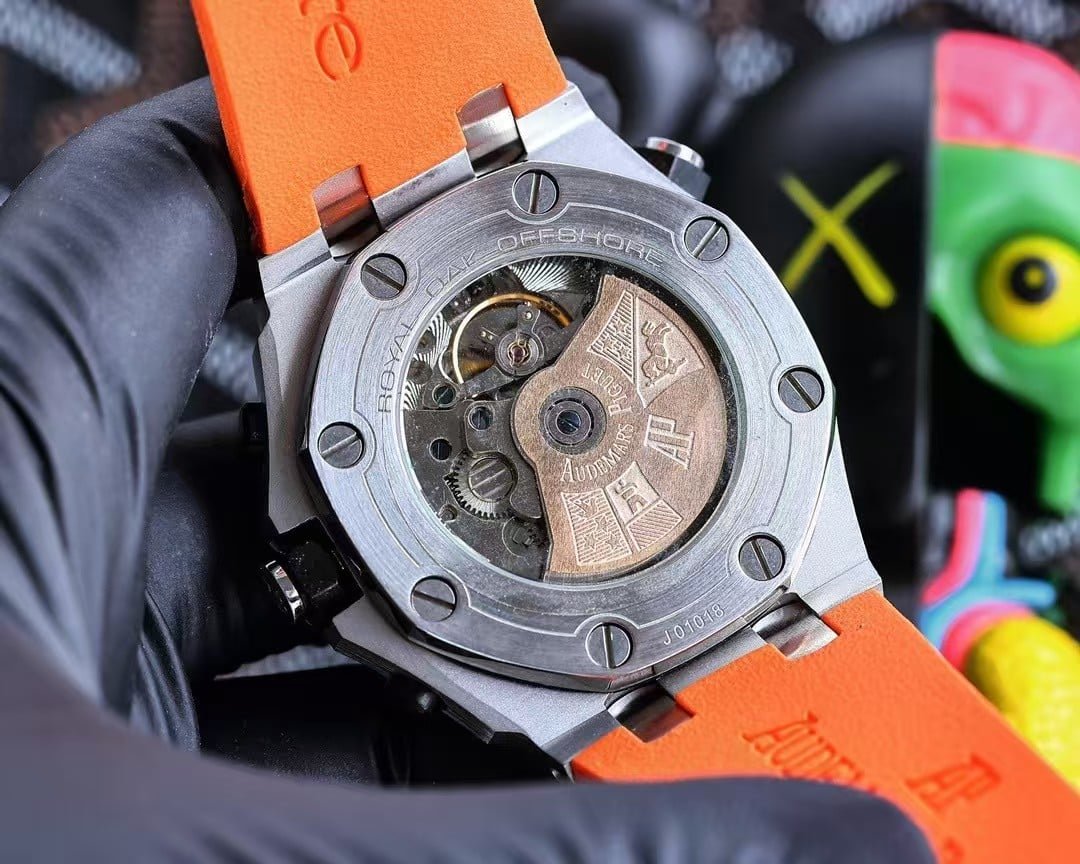 | Strap | OEM orange rubber strap + steel buckle | FKM orange rubber strap + engraved AP buckle |