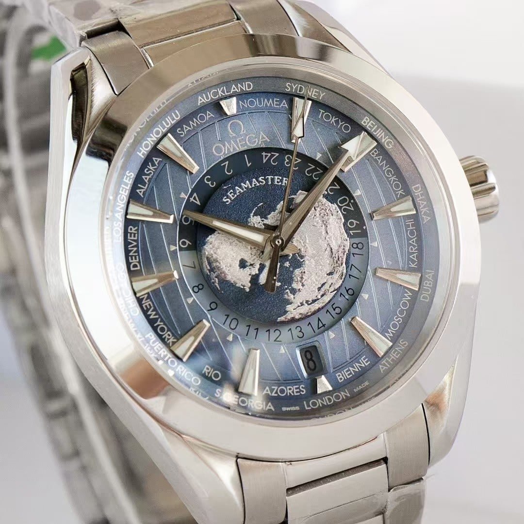 The Omega Seamaster Aqua Terra Worldtimer Blue Dial from VS Factory captures one of Omega’s most technically artistic designs — a world map surrounded by global time zones, rendered with precision and depth that few watches can match. It’s a piece that feels alive, changing character with every angle of light.