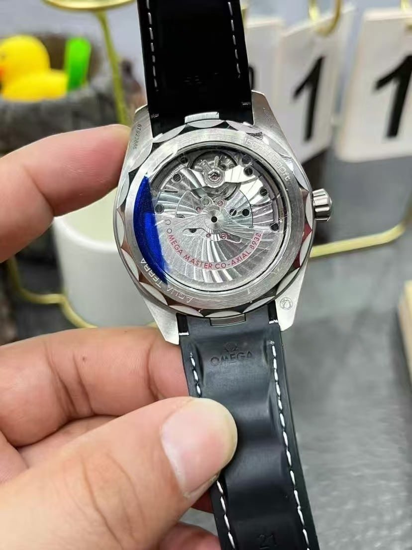 The polished hands and indexes glow cleanly in low light, and the sapphire crystal remains distortion-free even under direct lighting. The stainless-steel case is expertly brushed, transitioning into high-polish edges that match Omega’s real Aqua Terra finishing standard. Inside, the VS Calibre 8938 automatic clone performs smoothly, echoing the consistency and accuracy of the genuine Omega movement with impressive reliability for daily wear.