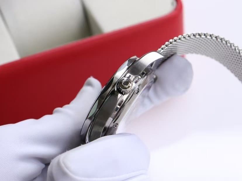 Inside beats the VS Calibre 8800 automatic movement, a near-perfect recreation of Omega’s Co-Axial Master Chronometer. It delivers smooth rotation of the second hand, precise timekeeping, and a realistic rotor design visible through the sapphire crystal case back.