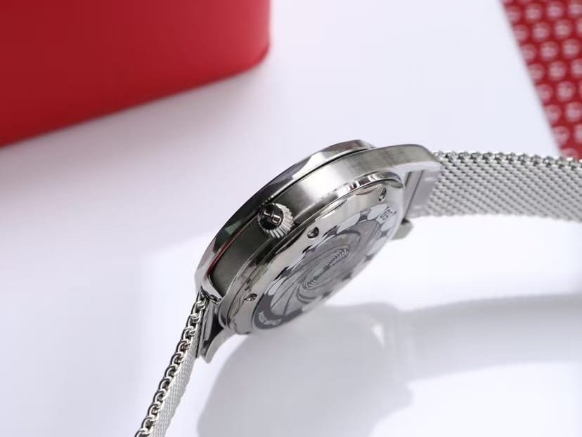 Paired with a stainless-steel Milanese mesh bracelet, this model offers both sporty flexibility and dress-level refinement — a timeless design made with true mechanical respect.