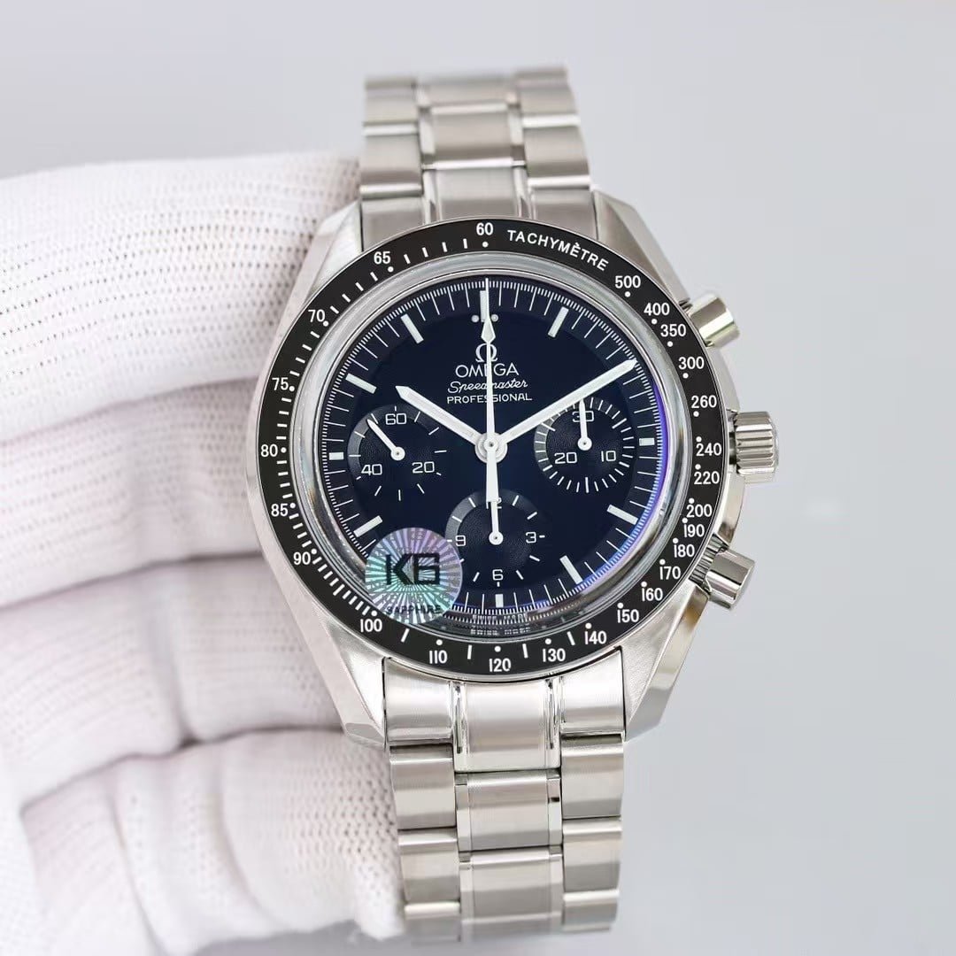 The Omega Speedmaster Co-Axial Chronometer from KB Factory China honors the legacy of one of the world’s most iconic chronographs — the Speedmaster. Revered as the “Moonwatch” family’s modern evolution, this KB Factory edition delivers the same bold character and mechanical precision that collectors expect, at a fraction of the original cost.