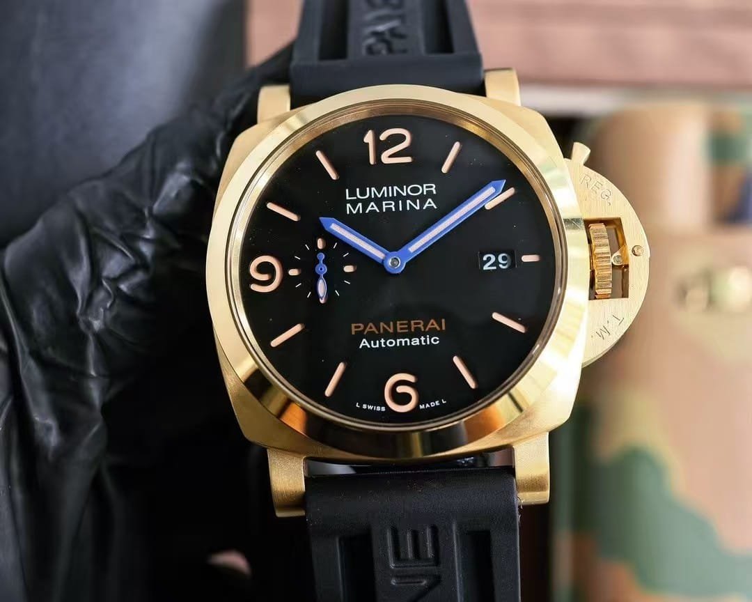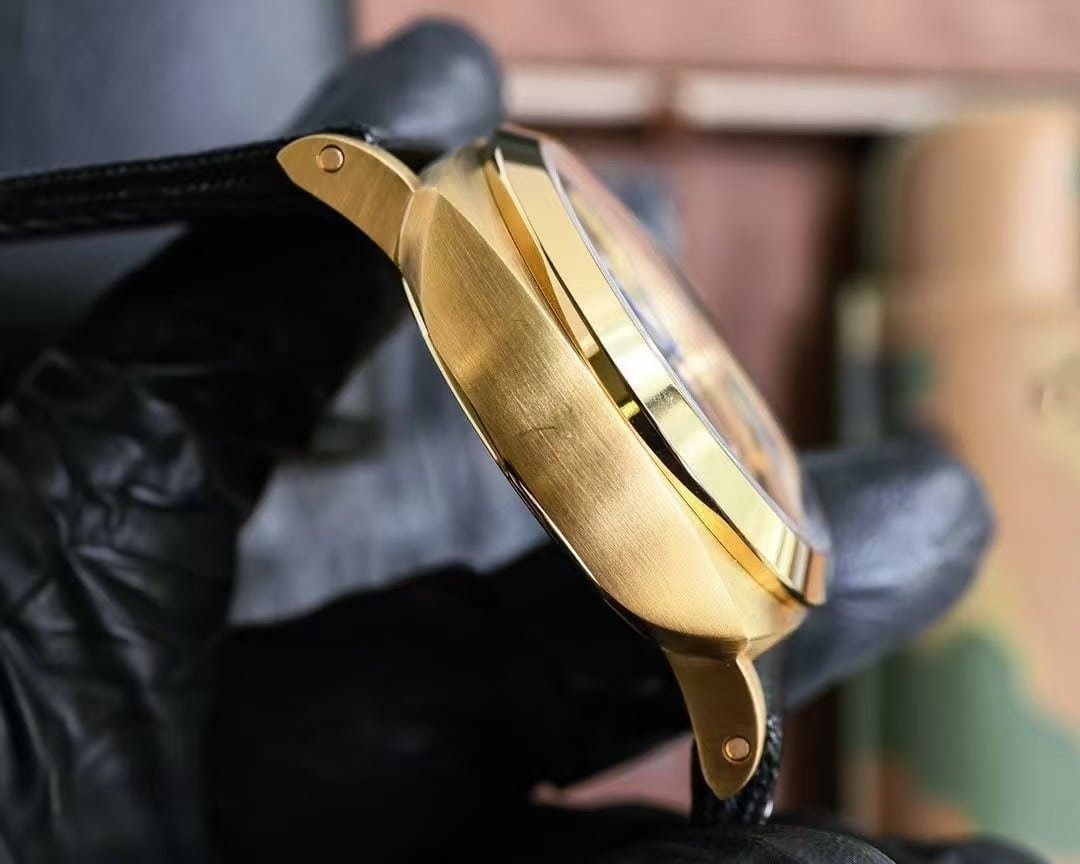 The Panerai Luminor Marina PAM01112 stands out as one of the most charismatic pieces in Panerai’s modern lineup. Combining the muscular design language of the Luminor series with the opulence of a gold-toned case, it perfectly balances power and elegance. The VS Factory (VSF) edition of this model has captured every nuance of the genuine Panerai, achieving a stunningly realistic 1:1 super clone that radiates prestige and performance.