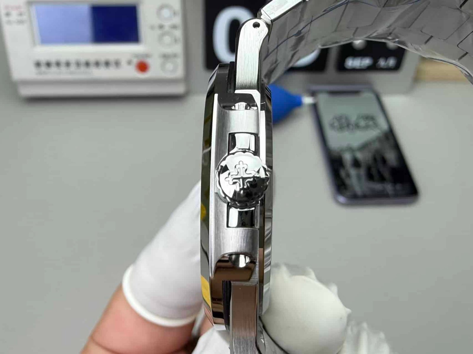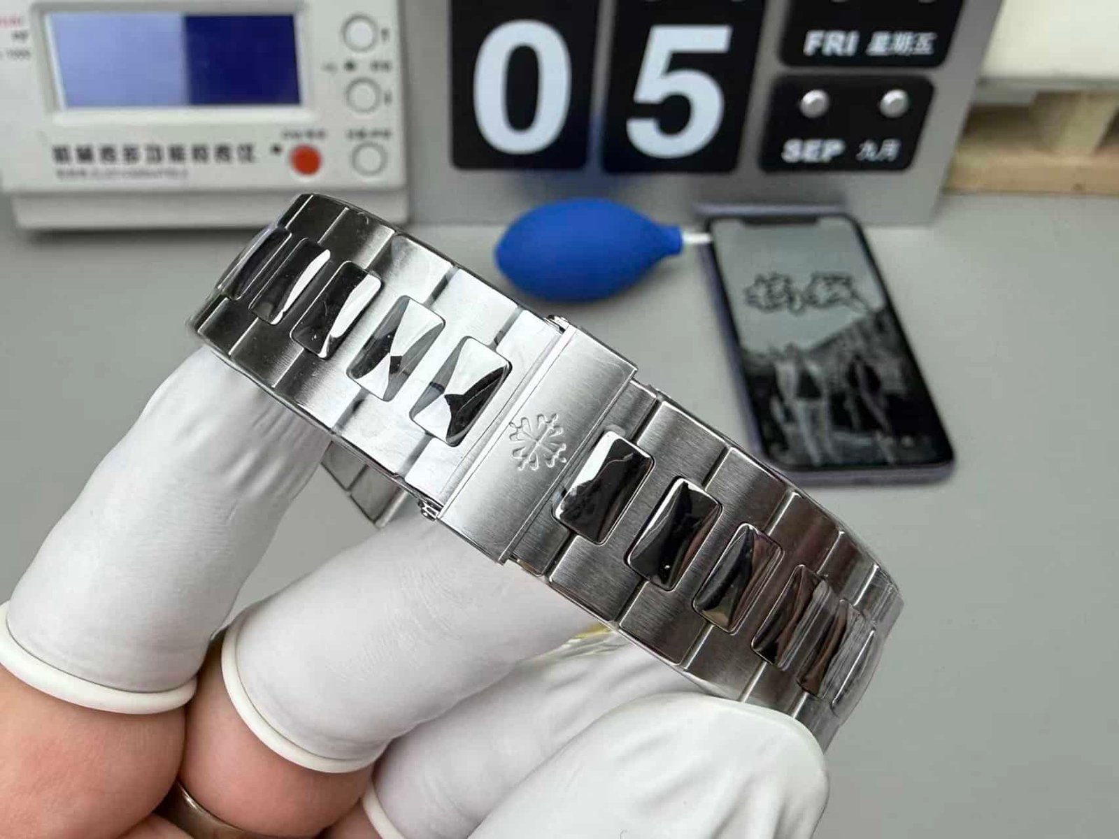 On the wrist, the PPF Nautilus 5711/1A-014 feels authentic — cold, solid, yet perfectly balanced. The green dial shifts color with every angle, just as collectors expect from the genuine. The bracelet articulates smoothly, with each link responding softly to motion.