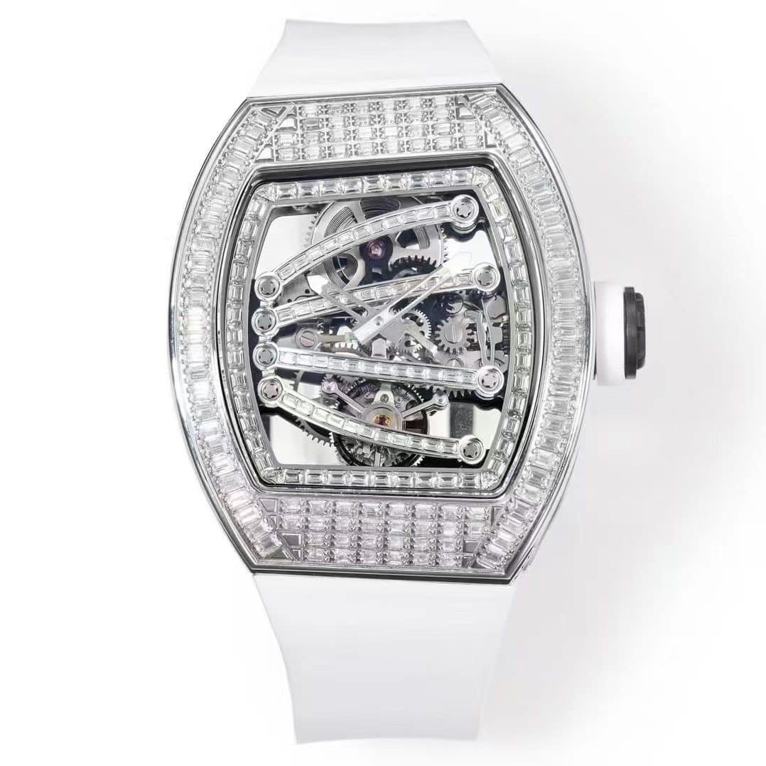 The ZF Factory RM07-01 Full Diamond Baguette Set transforms the mechanical watch into a jewel of precision. It captures the spirit of the original RM07-01 — a fusion of architectural geometry and feminine strength — reimagined here in a completely iced-out composition.