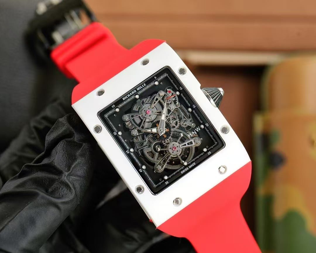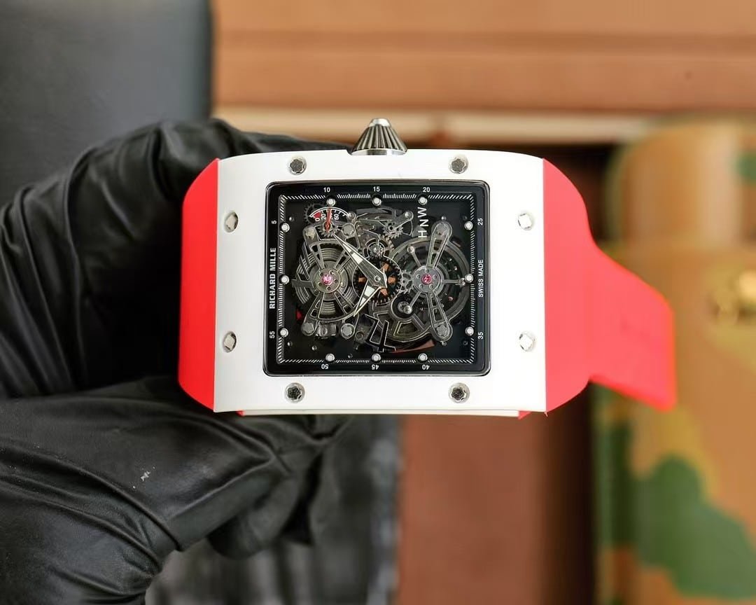 ZF’s re-engineering of the RM038 preserves the authentic feel of the genuine watch: the open-worked dial, the industrial skeleton geometry, and the racing-grade torque-limited crown that ensures smooth winding without over-tensioning. The vivid red FKM rubber strap injects the same visual punch that made Bubba Watson’s original timepiece famous on the green.