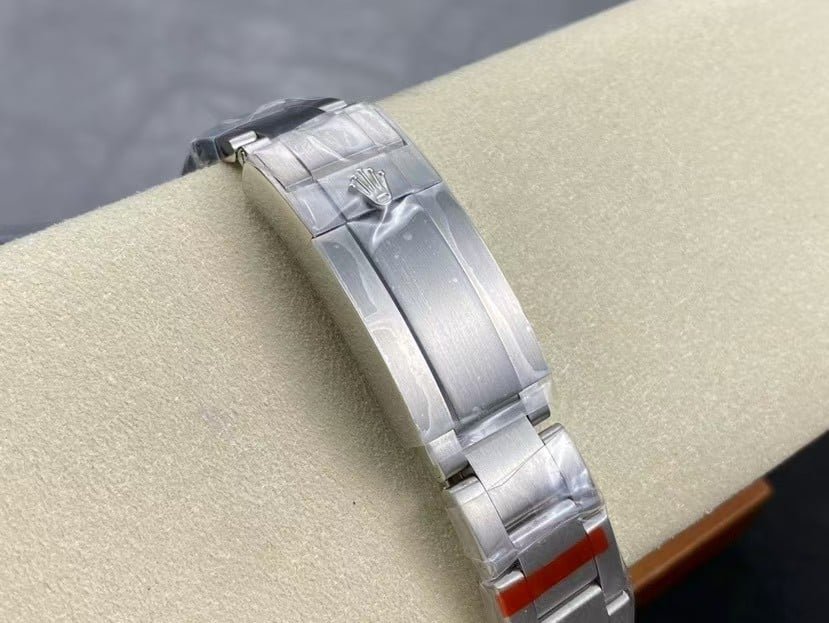 The Oyster bracelet is made from solid 904L links, featuring a brushed surface and polished edges, joined by a folding Oysterlock clasp with Easylink extension.