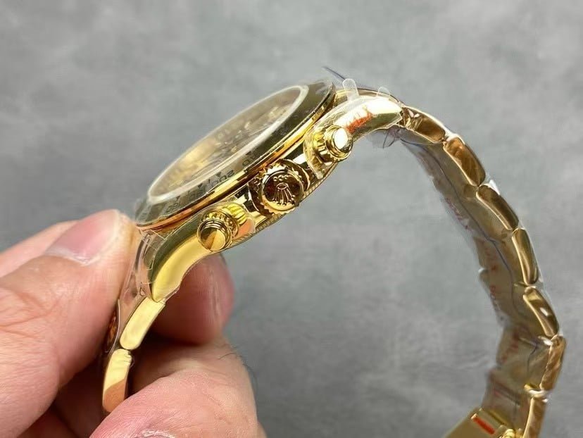 Its gold-tone radiance, smooth chronograph action, and solid 904 L weight give it the unmistakable aura of a high-luxury chronograph.