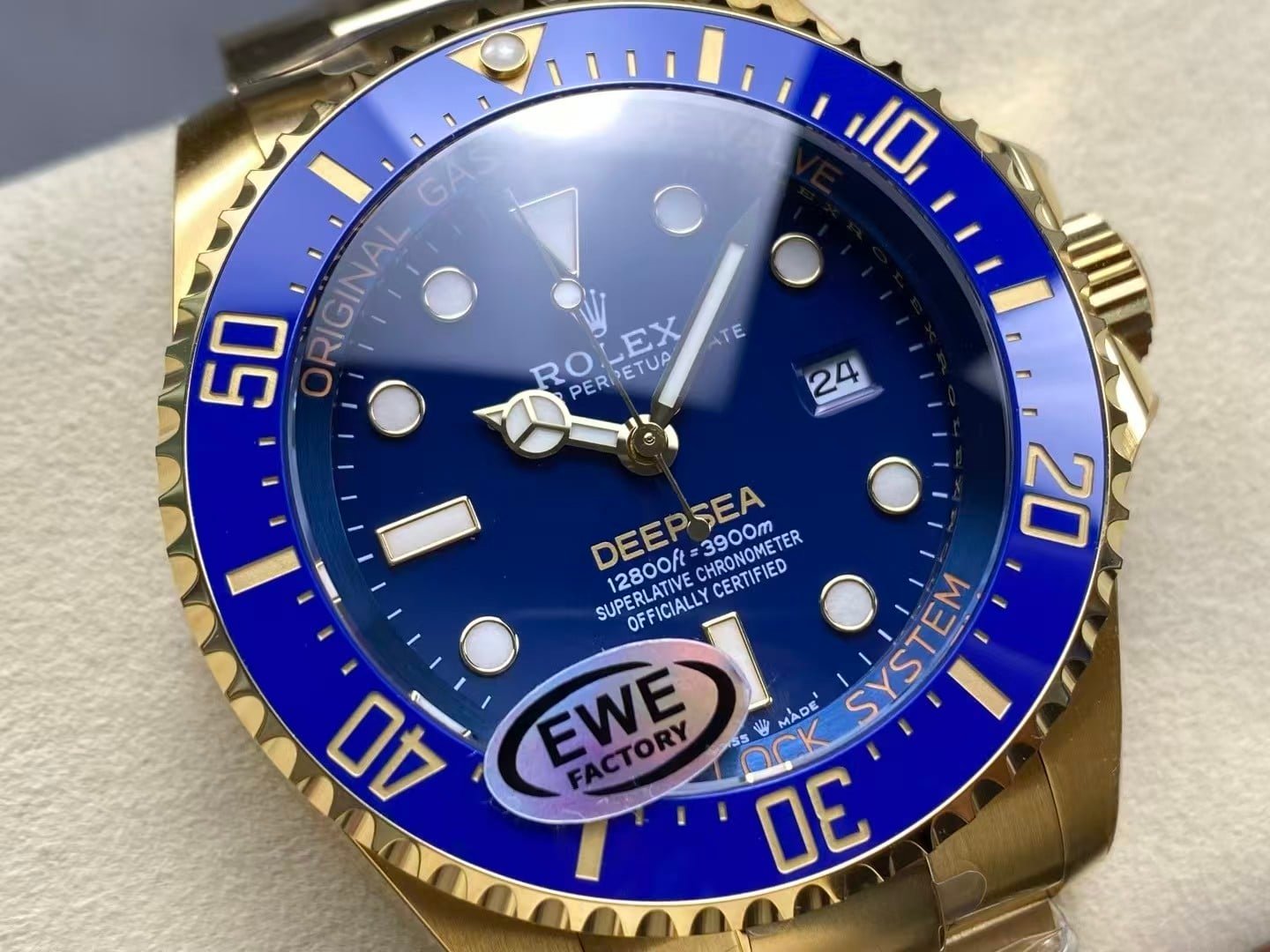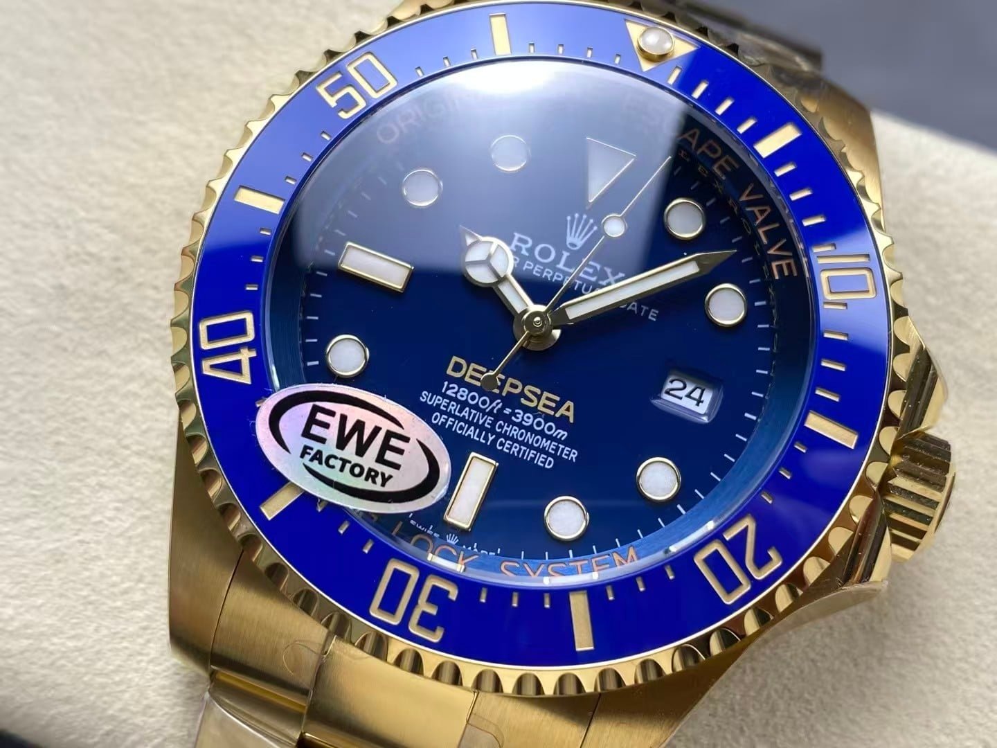 EWE Factory is known for its exceptional detail replication and premium-grade finishing. This Deepsea Blue Gold Edition is no exception — every surface, polish, and engraving is executed to mirror the original Rolex Deepsea standard, while adding an exclusive luxury aesthetic.