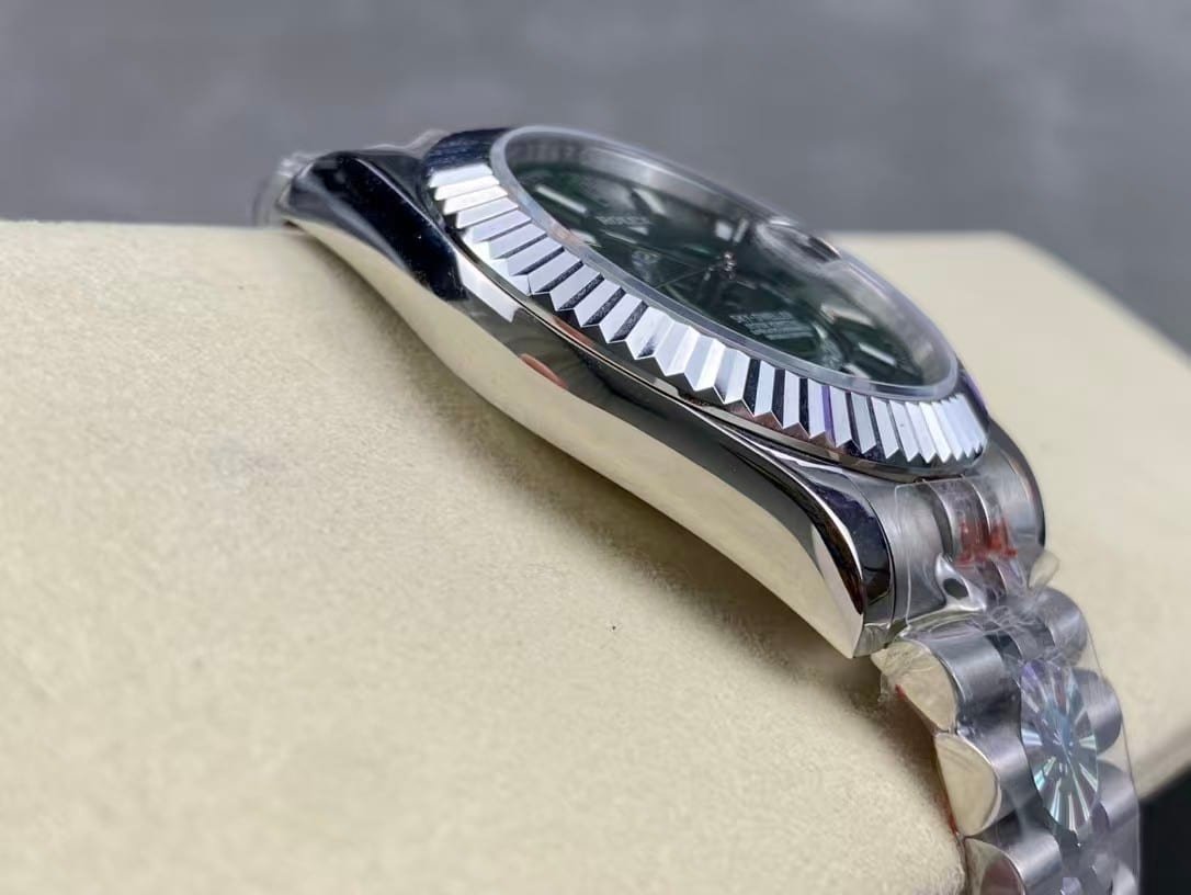 Green Sunburst Dial:This latest release captures Rolex’s new design direction — elegant yet powerful, with shifting tones from deep emerald to bright jade under light.