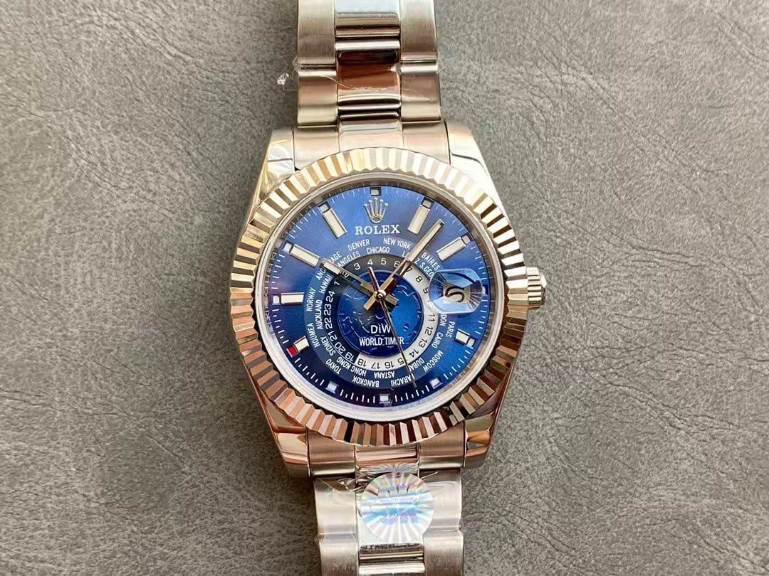 The Rolex Sky-Dweller 326934 Silver Dial combines refined aesthetics with mechanical mastery. Its sunray silver dial pairs perfectly with the fluted white-gold-style bezel, giving the watch a clean yet powerful presence. Inside, the fully functional Saros annual calendar and dual time zone display make it the ultimate companion for business travelers and collectors alike. Crafted in 904L stainless steel, this Clean Factory 1:1 super clone is engineered for precision and longevity.