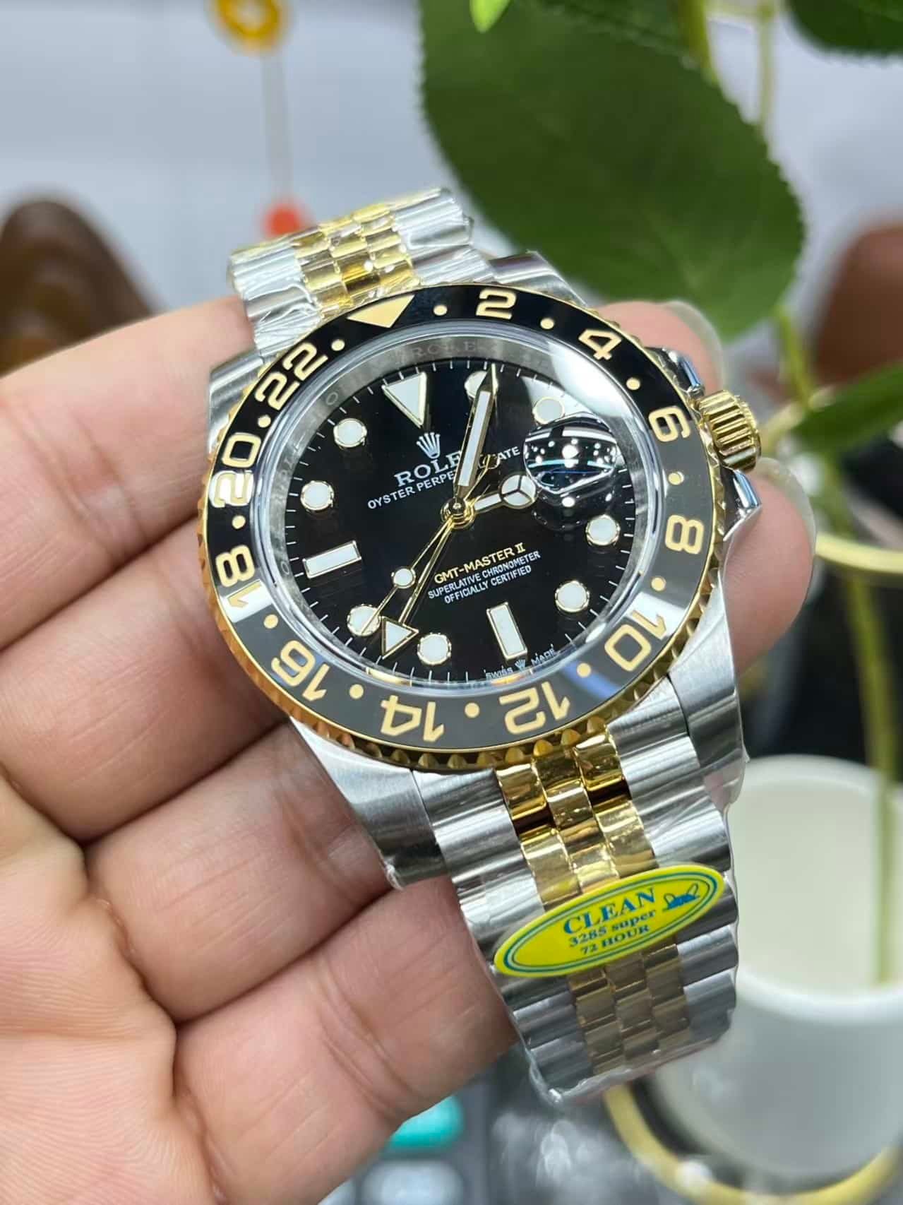 The Clean Factory 126713GRNR feels like luxury redefined. The warmth of the gold contrasts perfectly with the depth of the black bezel, making it suitable for both business attire and casual travel wear. The GMT function is intuitive and smooth, and the bracelet feels sturdy yet refined — just like the real Rolex Root Beer two-tone.