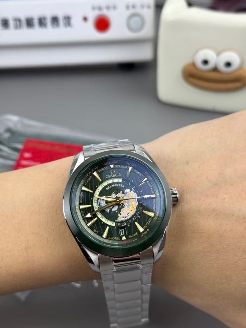 The Omega Seamaster Aqua Terra Worldtimer Green Dial from VS Factory China captures one of the most striking designs in the entire Seamaster collection — a perfect fusion of artistry, functionality, and world-class finishing. It’s a timepiece that doesn’t just tell time across the globe — it evokes the feeling of holding the world on your wrist.