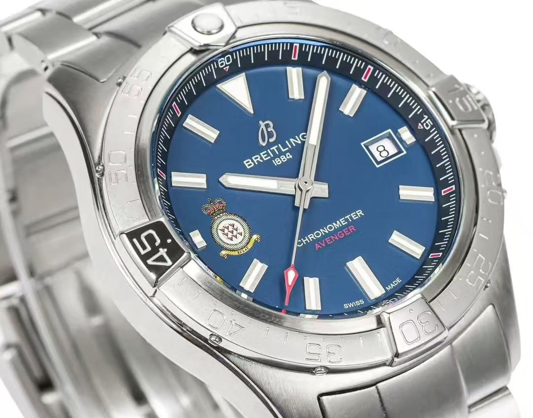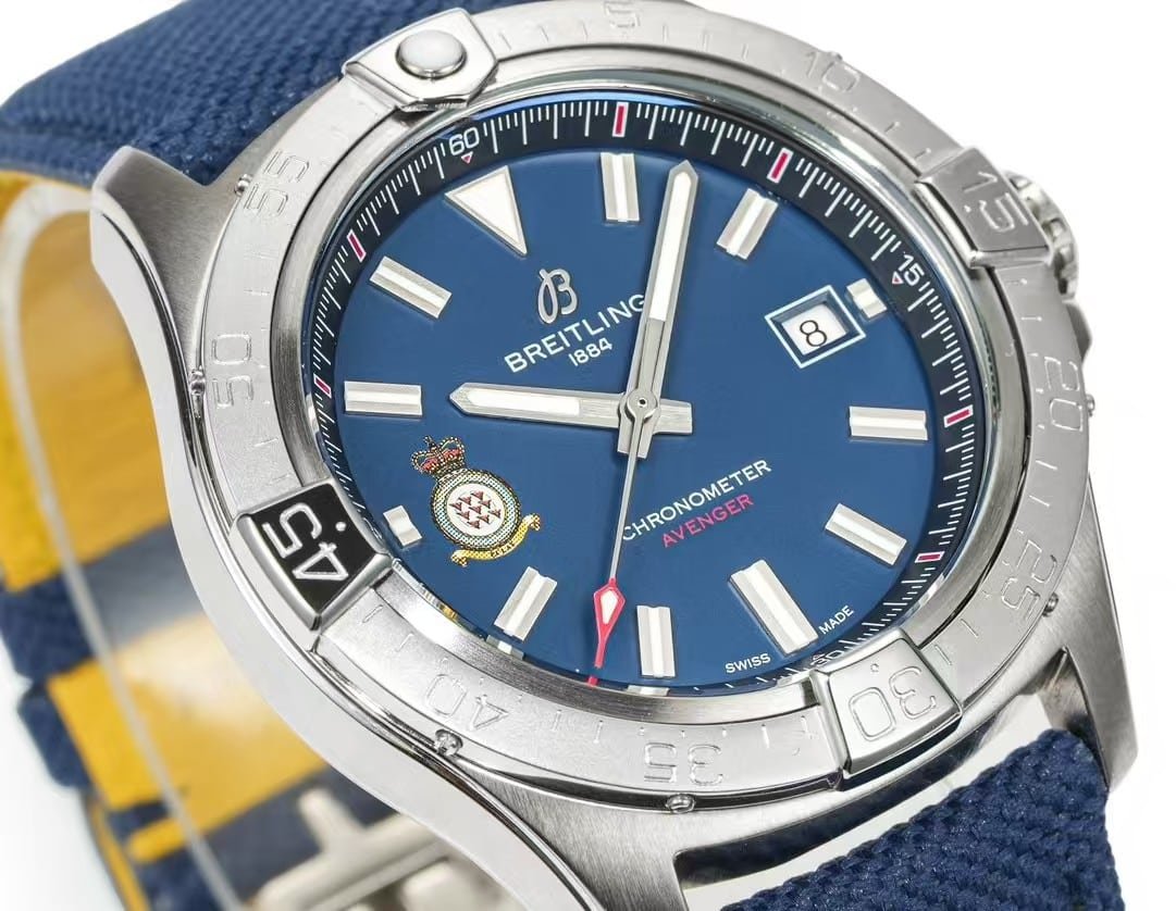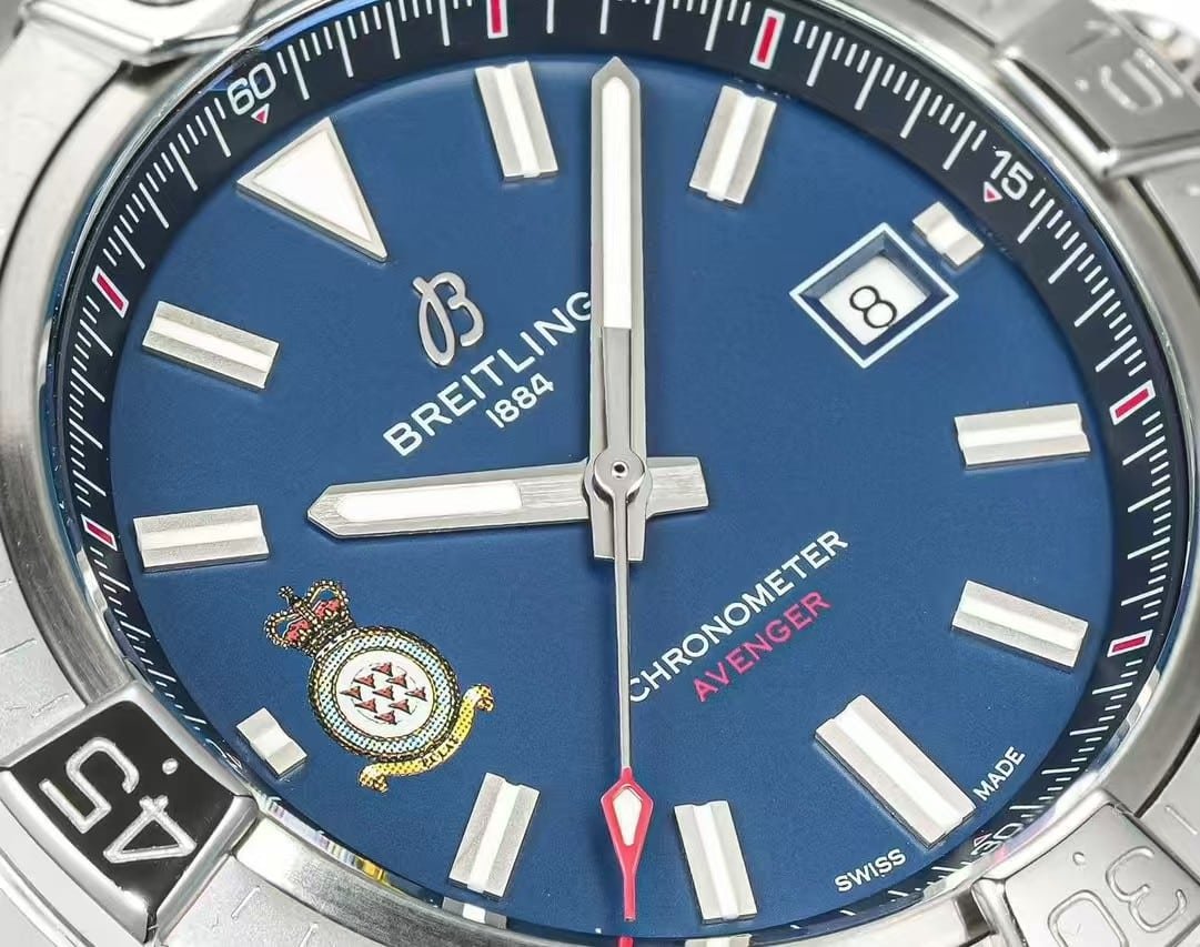 | Feature | Authentic Breitling Avenger 43 RAF Edition | BLS Factory Super Clone Version | Notes |