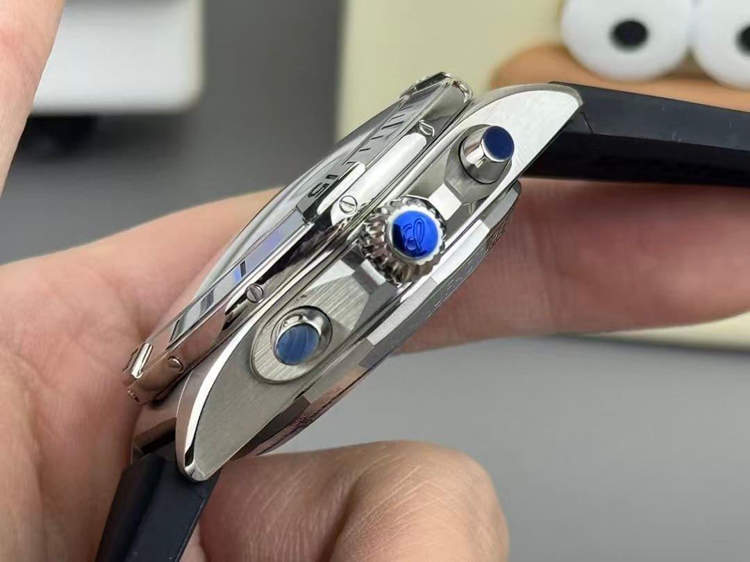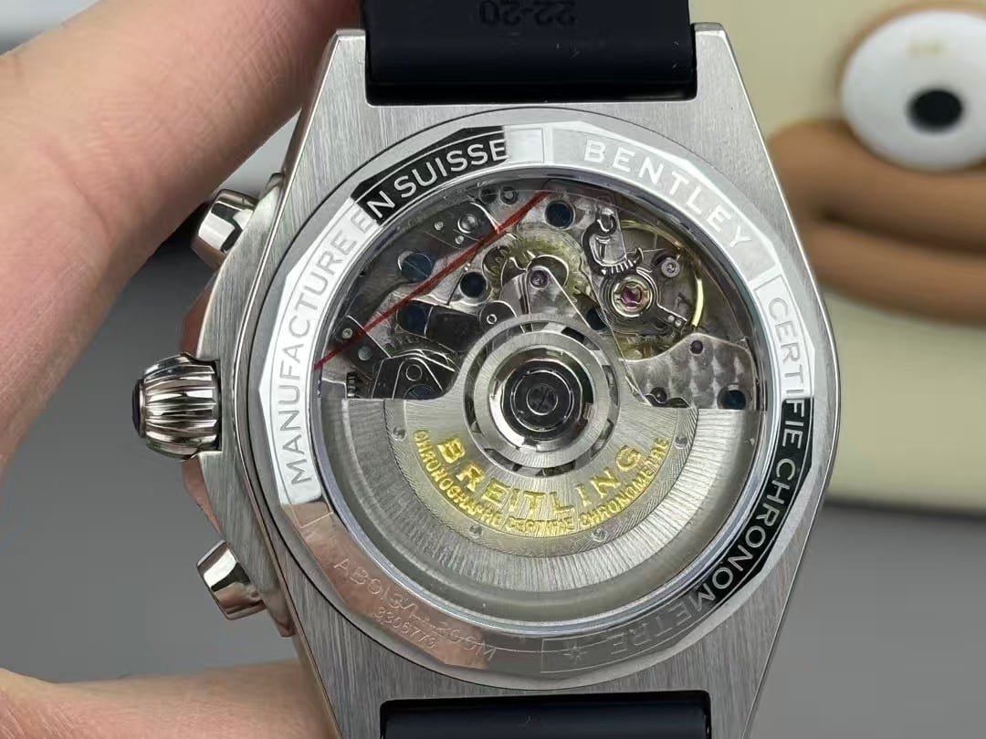 BLS factory versions often prioritize finishing consistency, clean dial printing and reliable chronograph alignment. This model follows that pattern. The ice-blue tone is even and avoids blotching; the polished bezels and rider tabs stay smooth along their edges; the chronograph hands return to zero accurately. BLS tends not to chase an exaggerated mirror polish—instead they focus on a controlled, even surface finish that holds up under daily light. The result is a Chronomat replica that looks refined without drifting into artificial gloss.